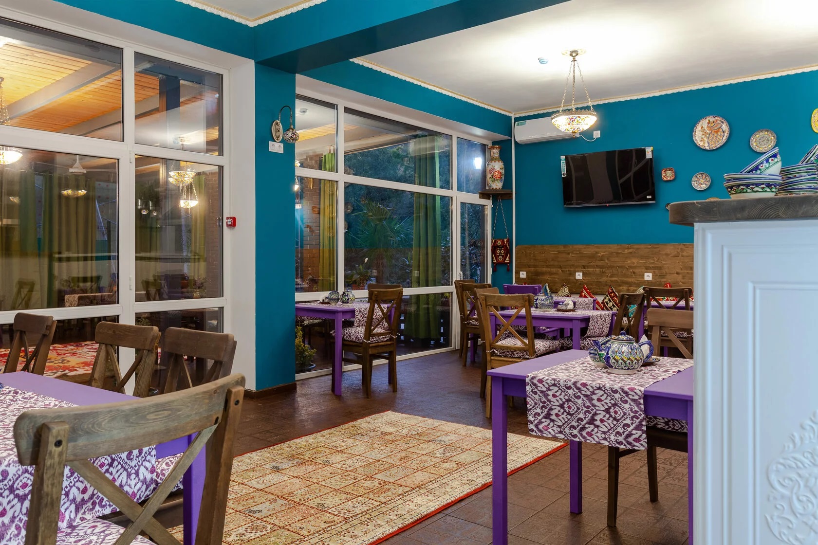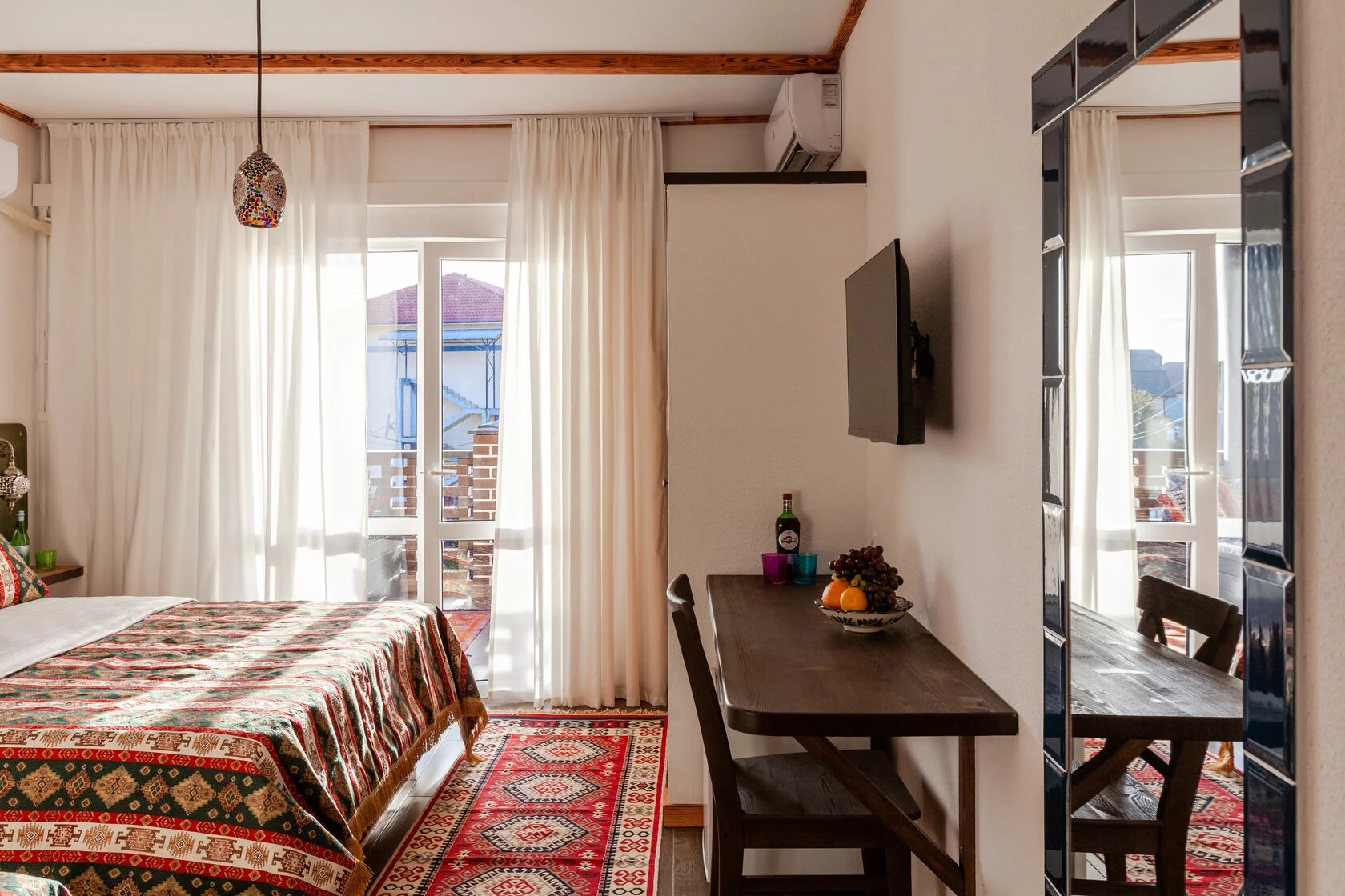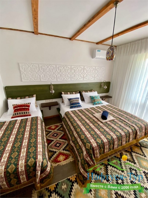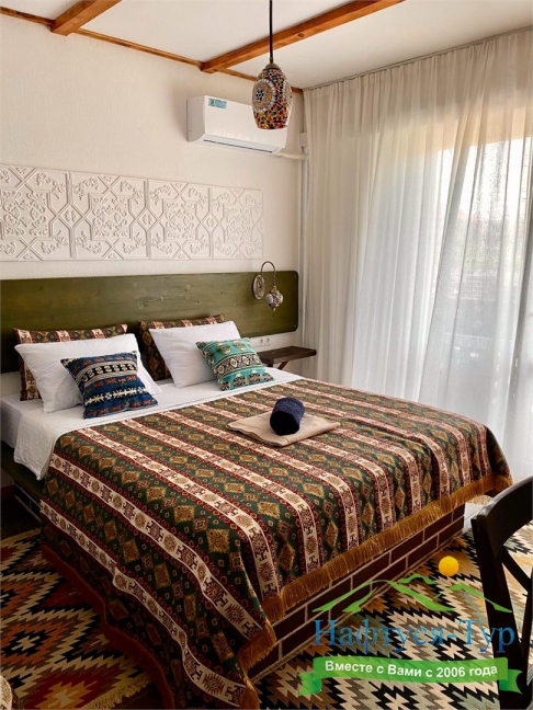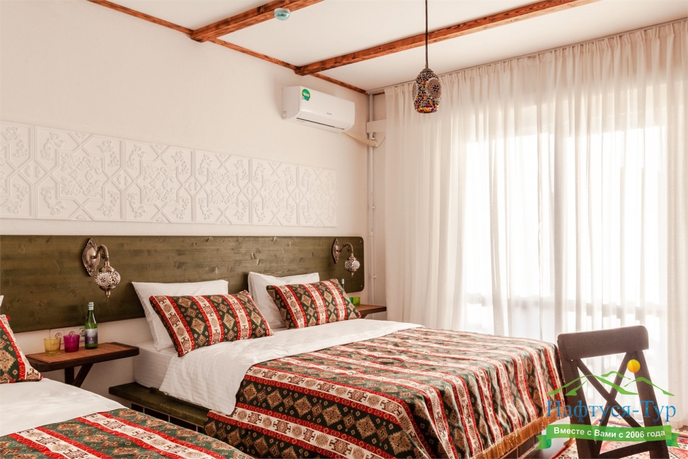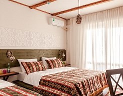 К услугам гостей 42 комфортных комнаты по 16-20 кв.м, оформленные в восточном стиле. Все комнаты имеют отдельные балконы и панорамные окна.
