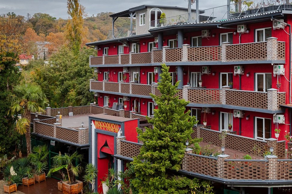 БИОХАКИНГ ОТЕЛЬ «МАРРАКЕШ» великолепно расположился в курортном поселке «Горный воздух» всего в 4-х минутах ходьбы от побережья Чёрного моря, вдоль реки Уч-Дере и всего в 15 километрах от центра Сочи.