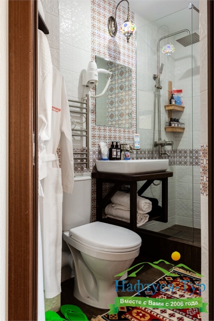 с душем, туалетные принадлежности, фен