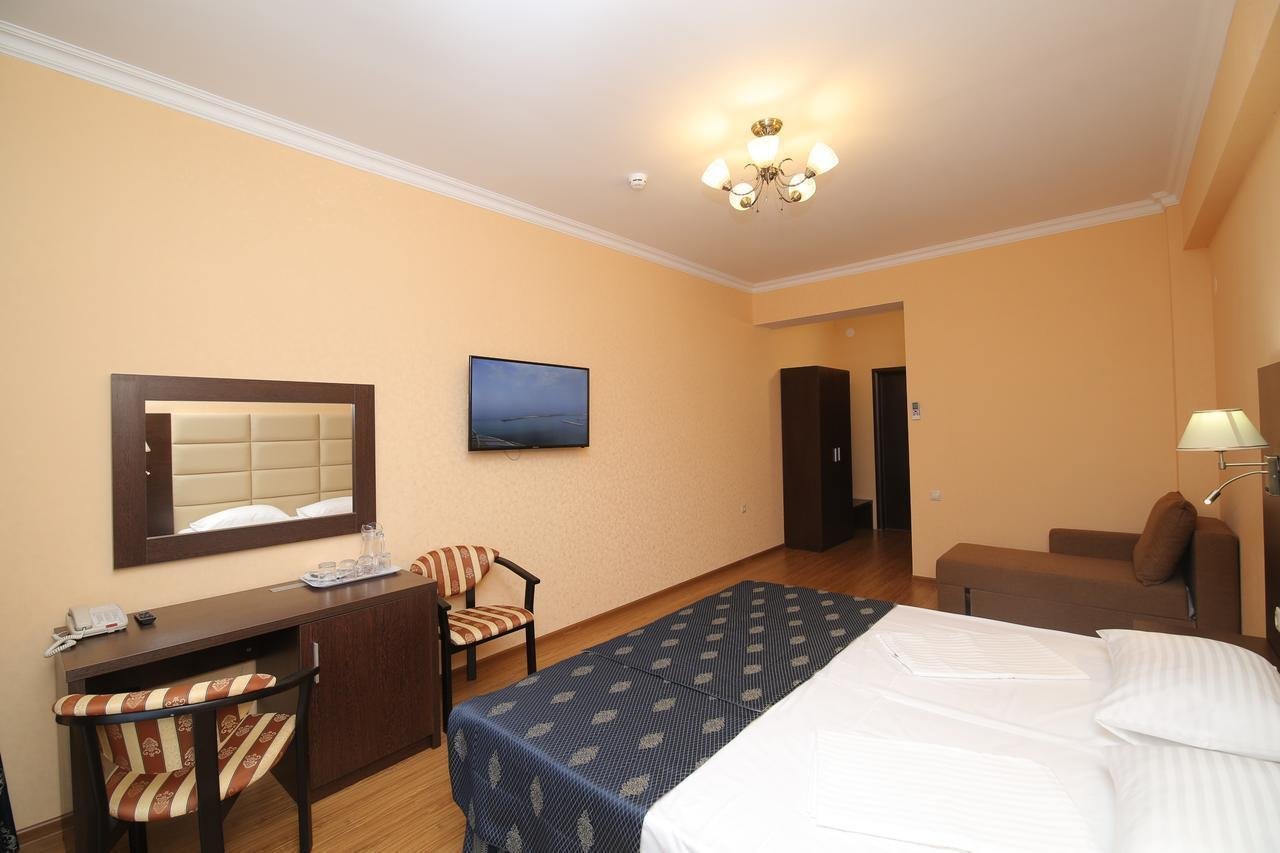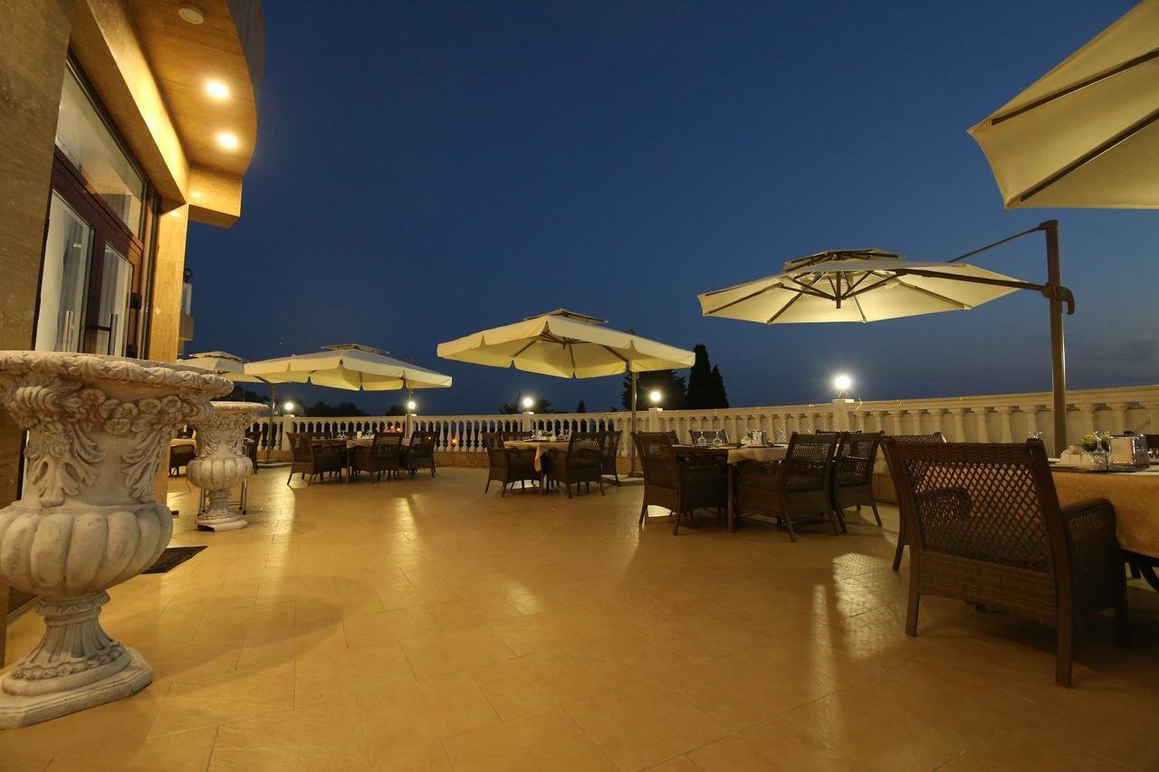 На территории расположен уютный ресторан, лобби-бар, тренажерный зал, детская площадка, также открытый бассейн с пресной водой.