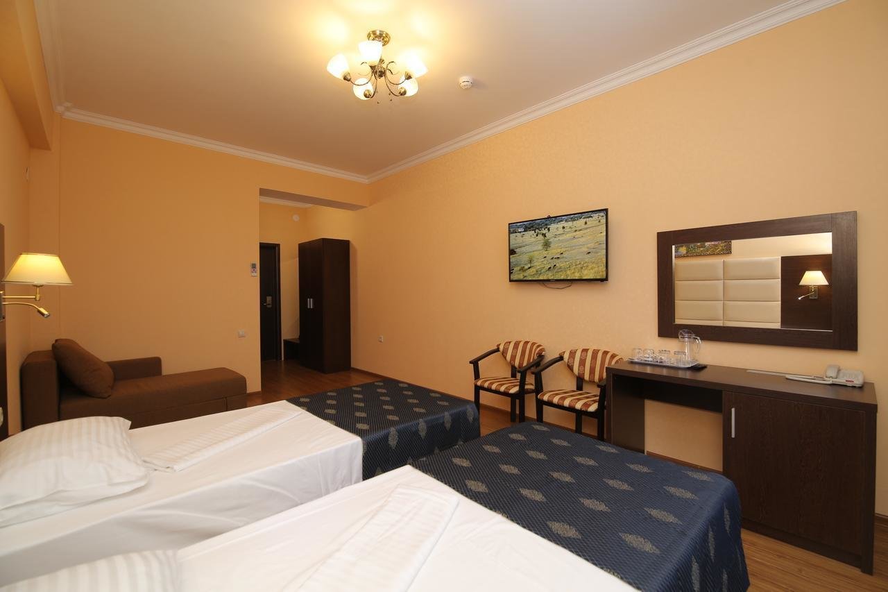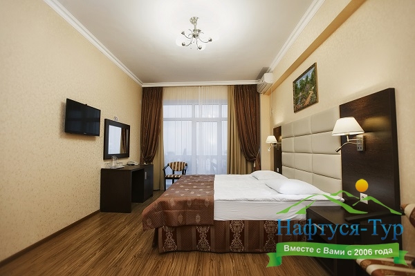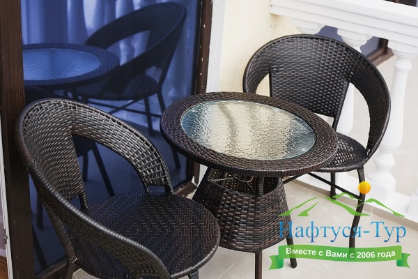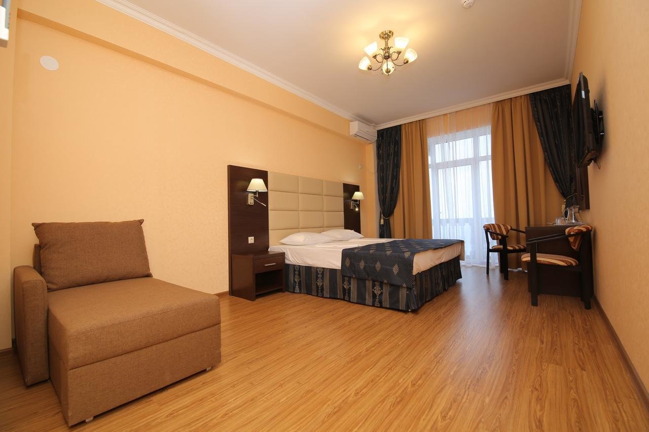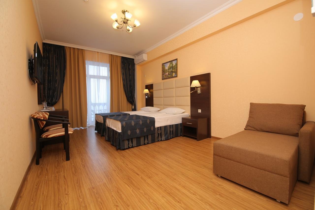 Гости могут уютно расположиться в номерах категории "Стандарт", оснащенных мебелью и техникой. На каждом этаже, кроме 2-го, есть терраса с панорамным видом на море и горные окрестности, которая оборудована столиком и стульями.