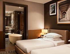 Остановились в этом отеле впервые. Отель полностью соответствует заявленному статусу. Интерьер изысканно-сдержанный. Достаточно большие номера, хорошая мебель. Всё производит приятное впечатление. Персонал профессиональный и вежливый.