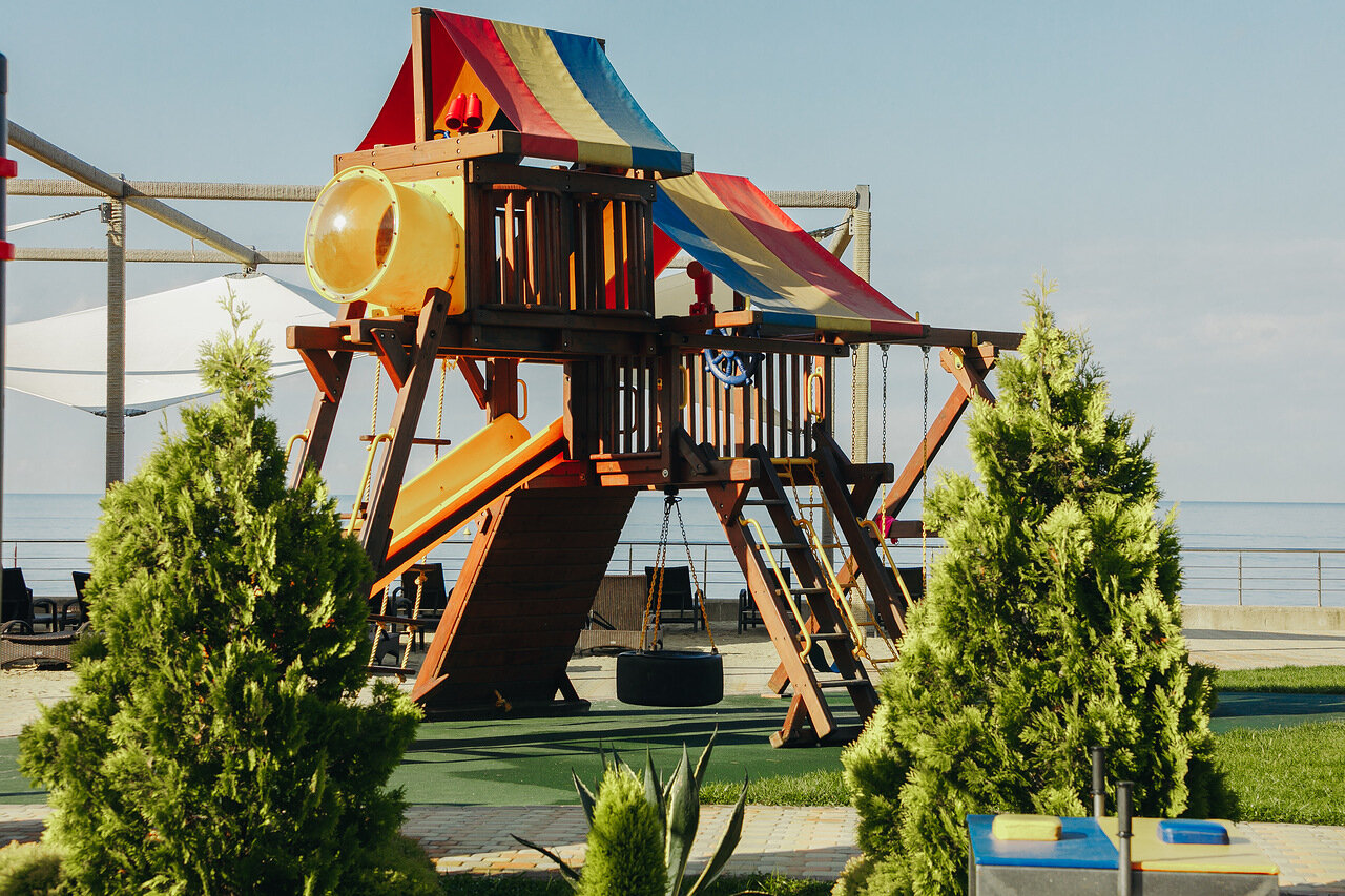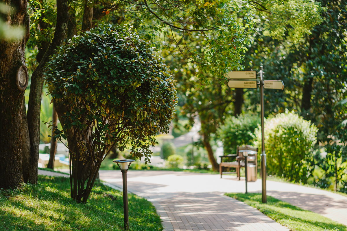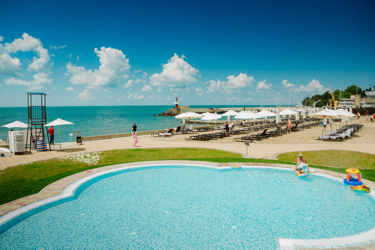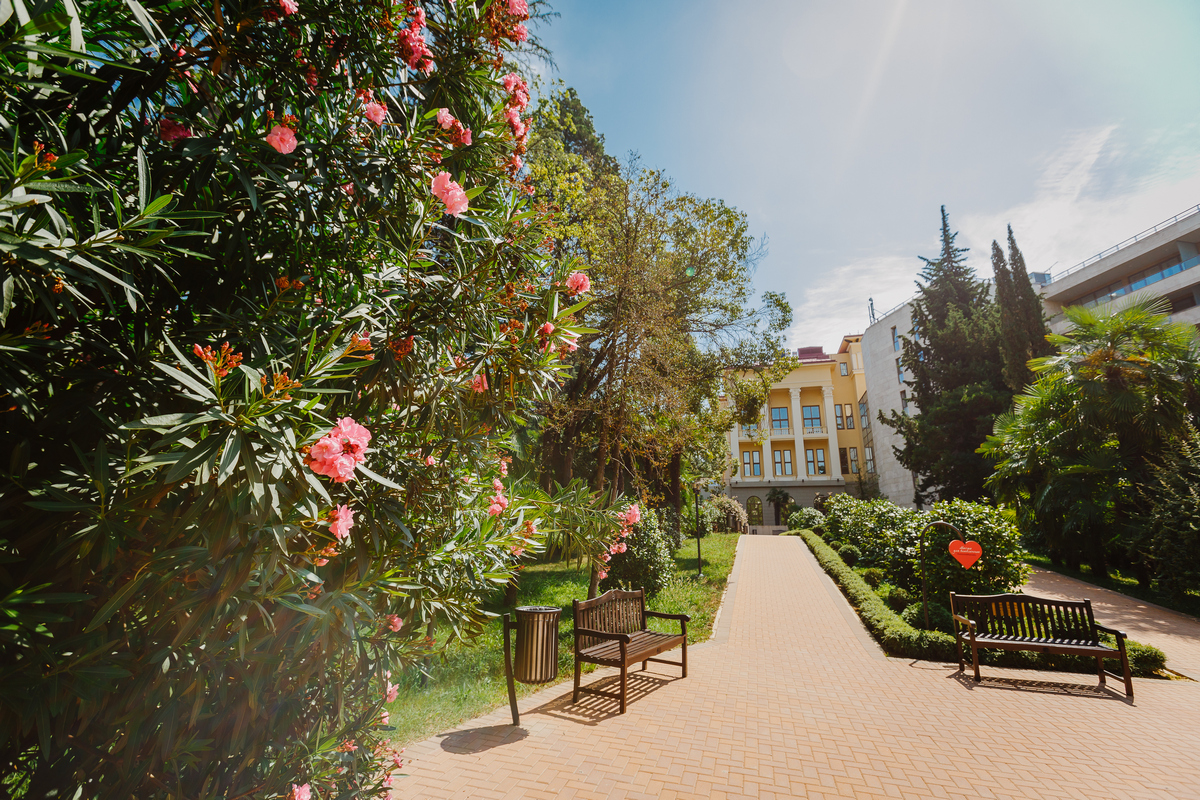 Отель расположен на территории природного парка на берегу Черного моря в непосредственной близи к главным достопримечательностям Сочи.