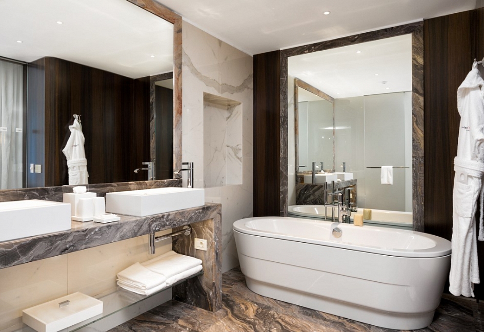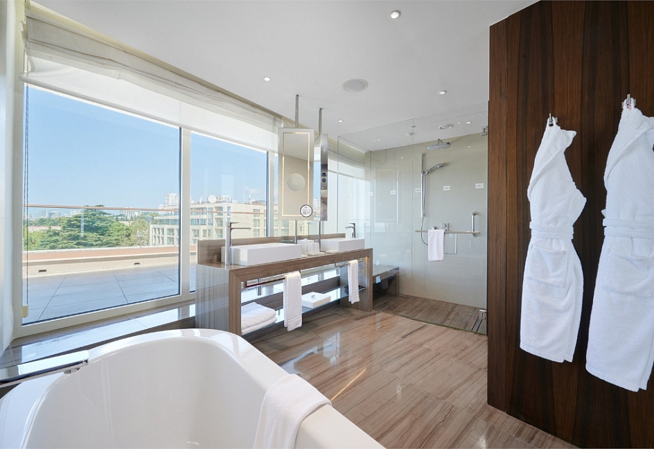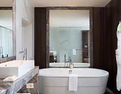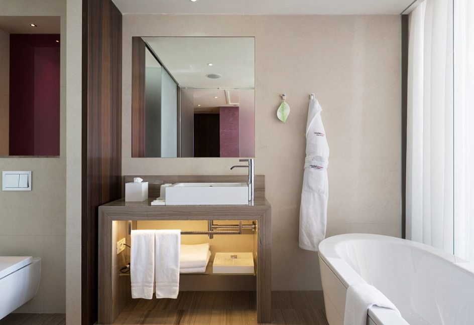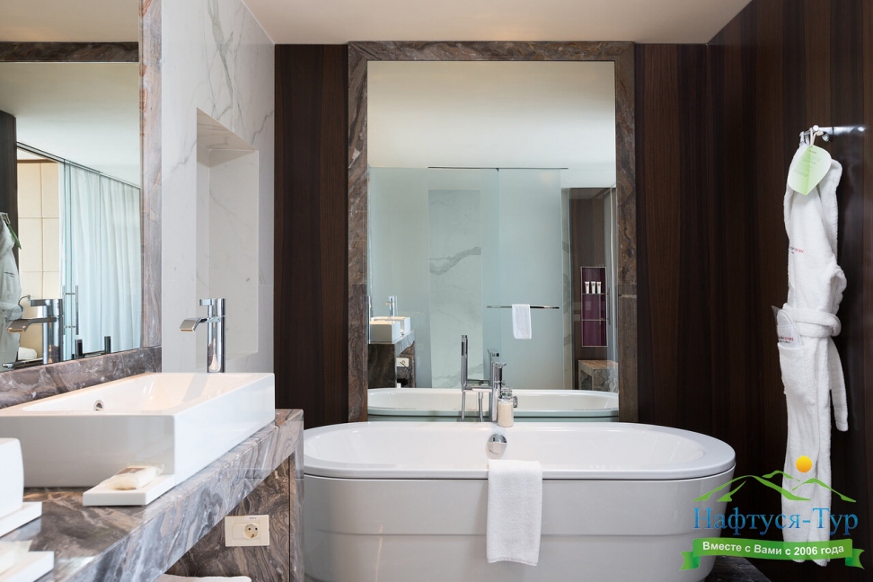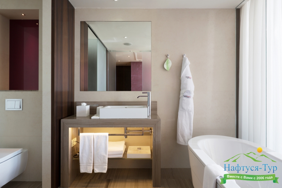 Пожалуй, это отель высочайшего класса. Мне всё здесь очень понравилось, и даже больше чем я ожидал. Территория отличная, чистая и хорошо ухоженная. Номера великолепно оборудованы, есть всё, что необходимо: банные принадлежности, чайник, мини-бар, кофеварка, гладильная доска, халаты, тапочки и т.