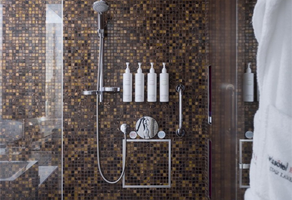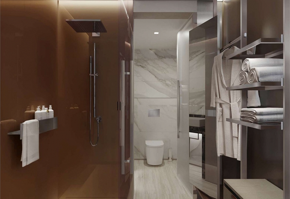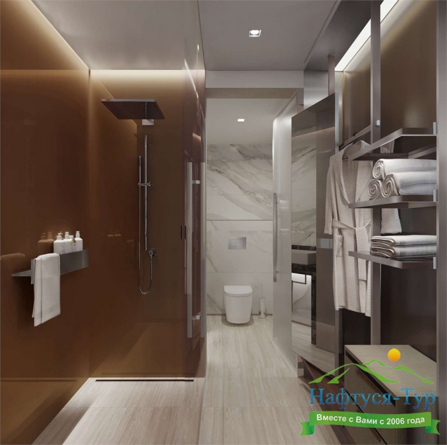 с душем, туалетные принадлежности, халат