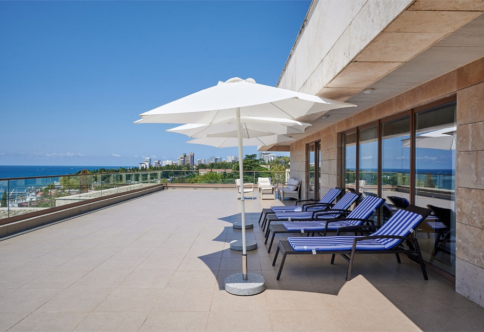2-мест.(разм. в 4-мест.) президентский люкс с террасой и 2-сп. кроватями(вид на море)