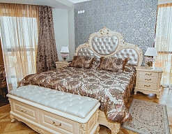 вешалка, зеркало, кресла, кровать двуспальная, прикроватные тумбочки, стулья, шкаф