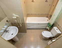 с ванной/душем, тапочки, туалетные принадлежности, фен, халат