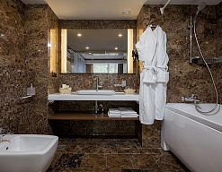 с джакузи, тапочки, туалетные принадлежности, фен, халат