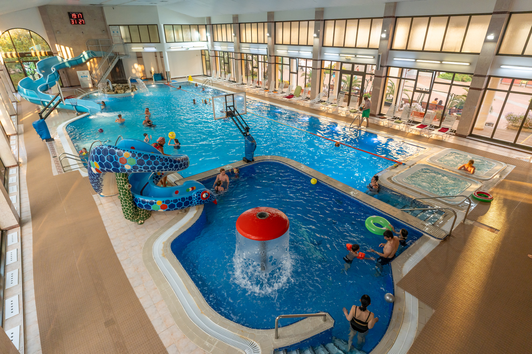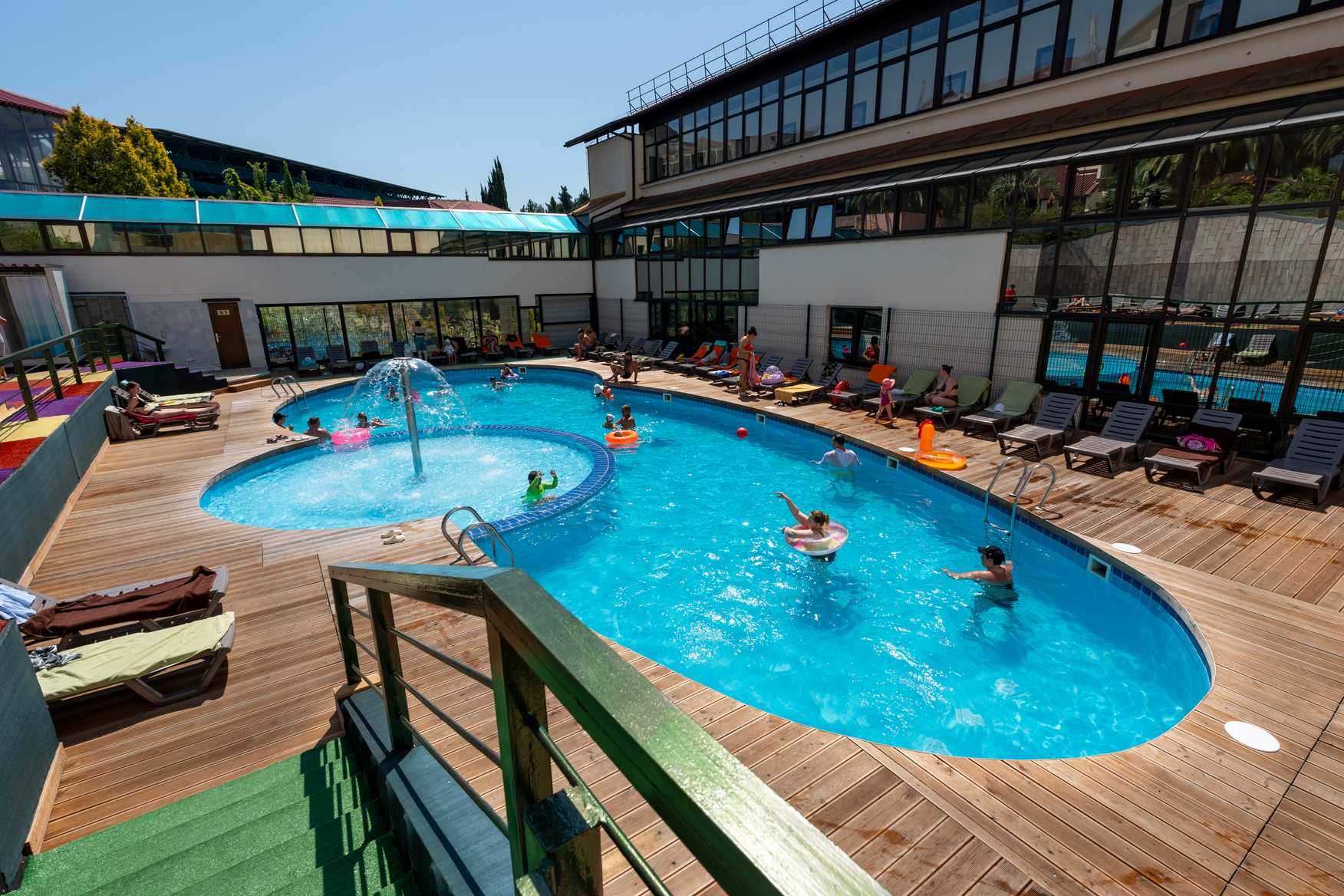 Санаторий «ЮЖНОЕ ВЗМОРЬЕ» имеет развитую курортную инфраструктуру, которая включает, как открытый, так и крытый бассейны с морской водой.