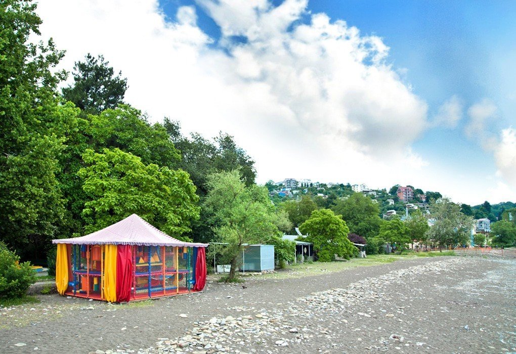 Расположение: Первая линия у моря (30 м до пляжа от корпуса 1), 63 км до центра Сочи, 88 км до аэропорта Адлер