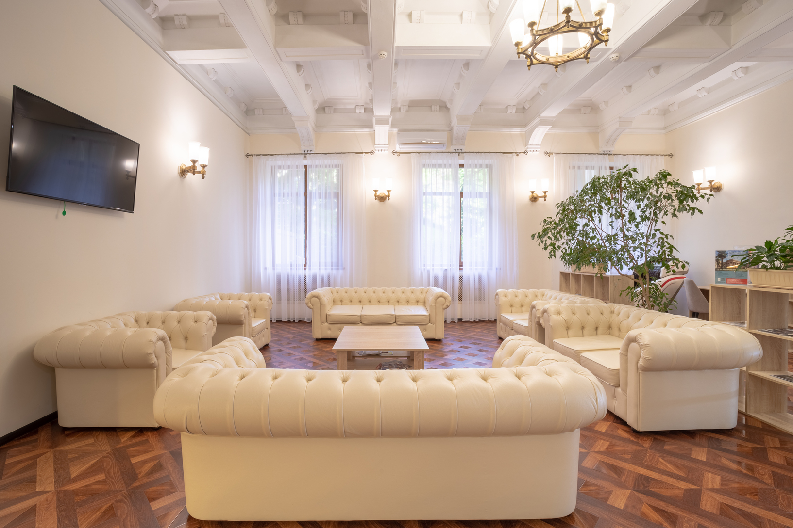 Современное оборудование: Санаторий оснащен передовыми технологиями, что позволяет проводить эффективные процедуры и точную диагностику.