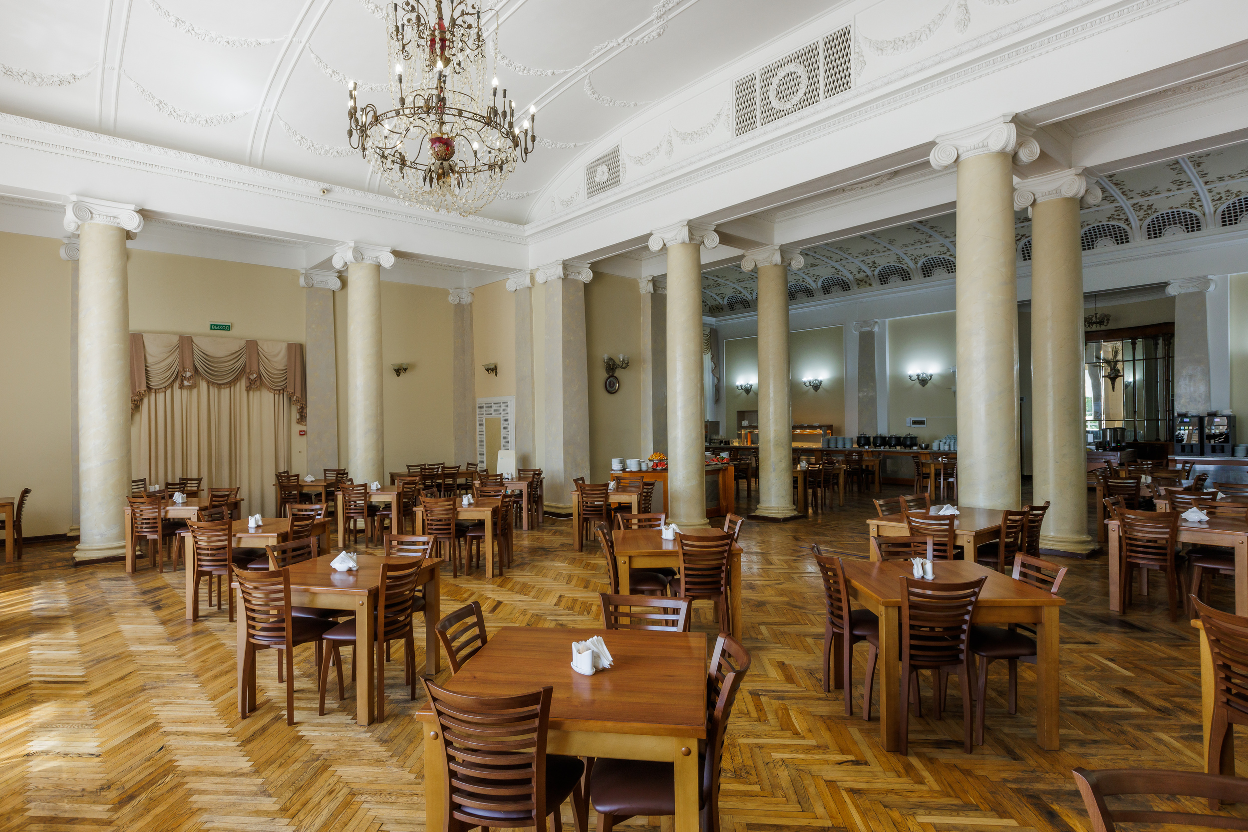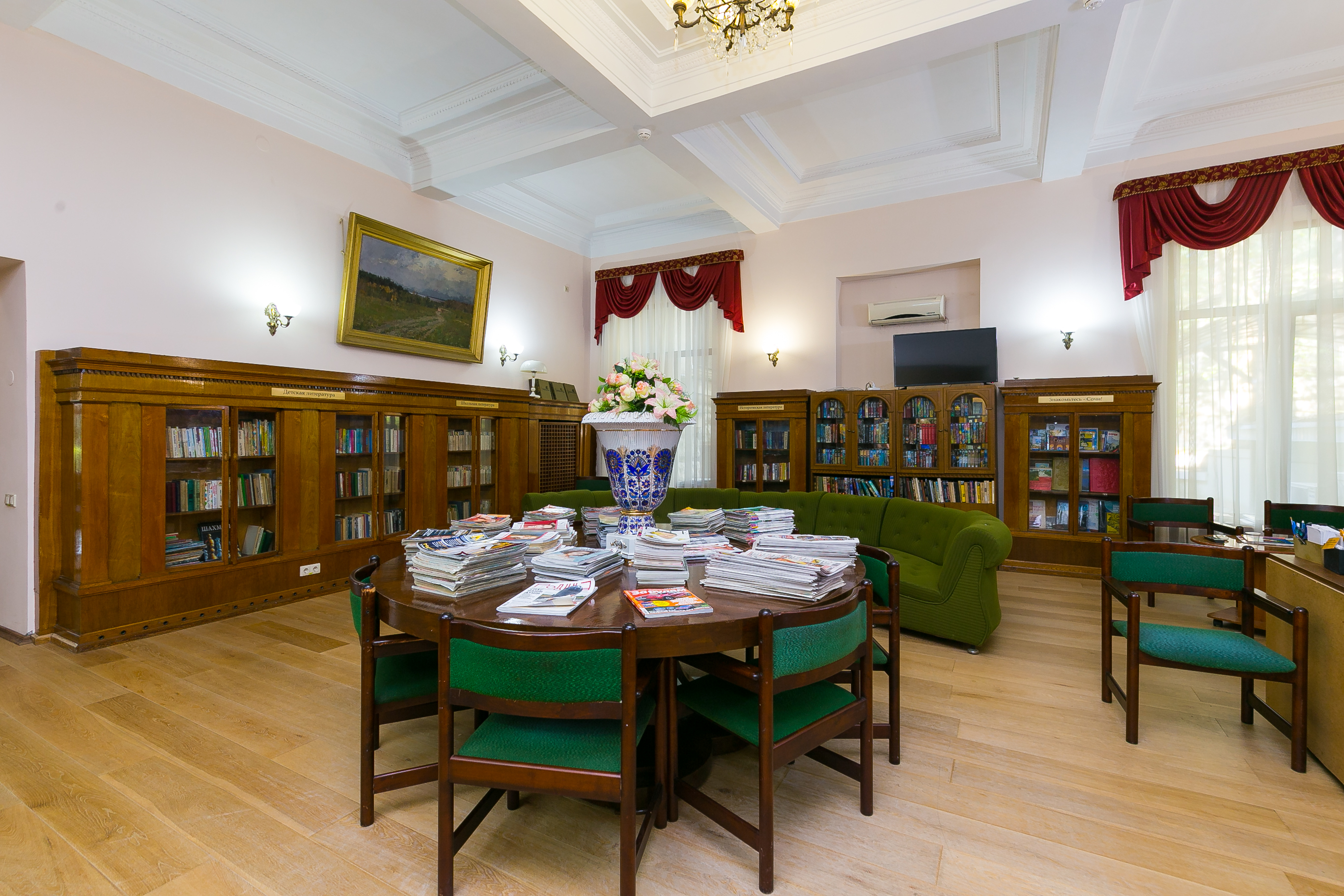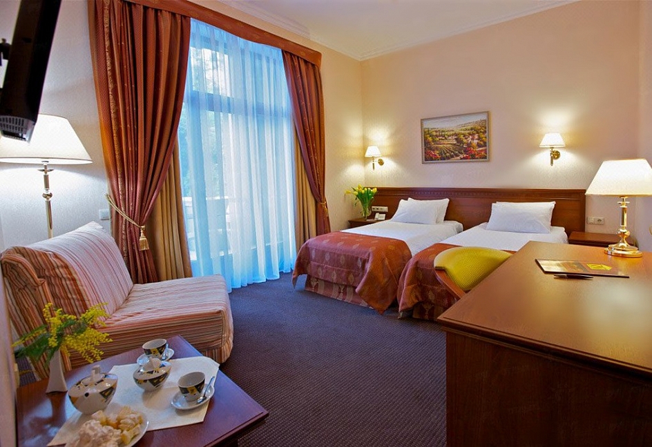 Шикарный исторический санаторий, при этом современным ремонтом! чистота и красота территории, профессионализм и вежливость персонала огромная зелёная территория, уютные номера, великолепная лечебная база.