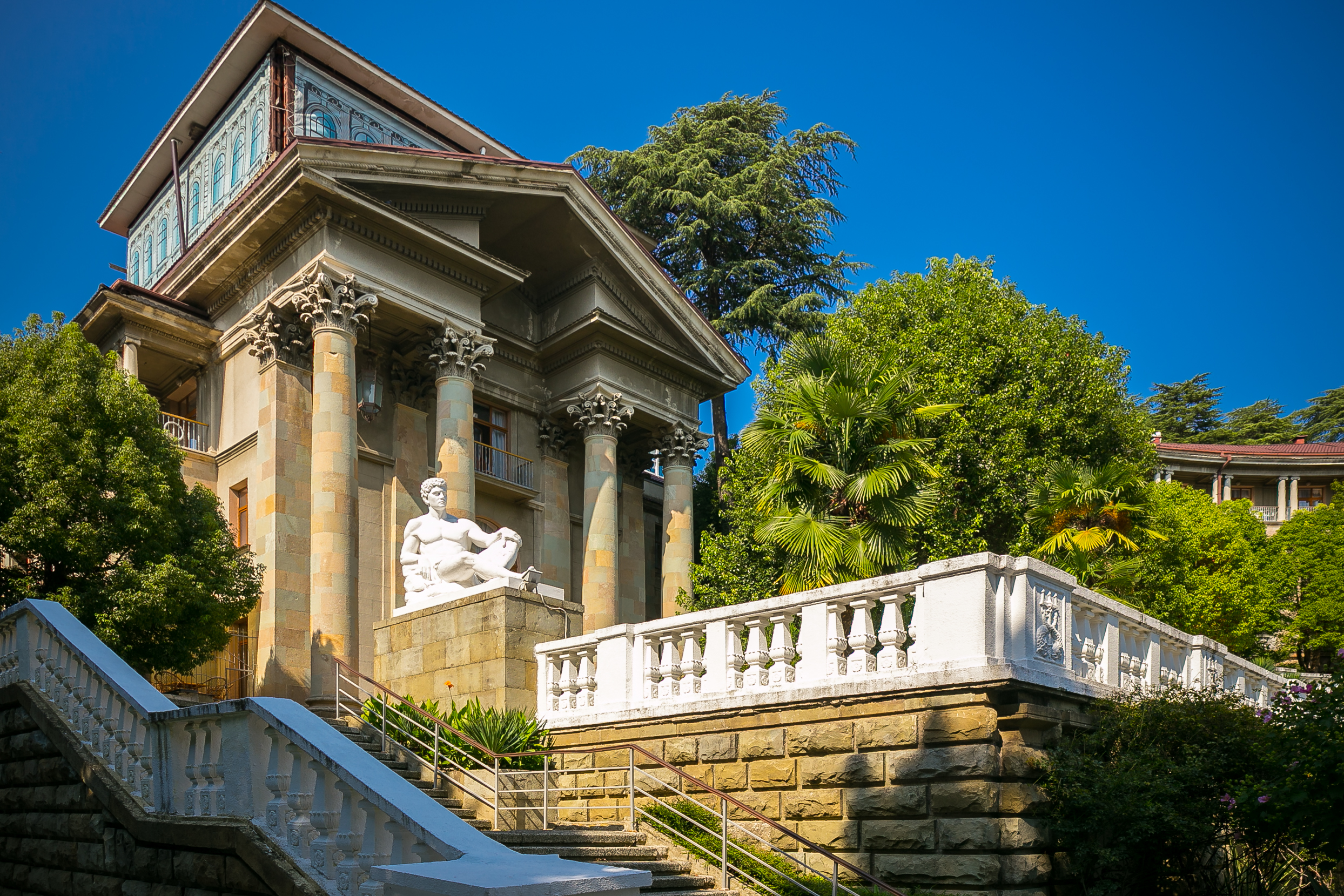 Расположение в живописном уголке Сочи: Санаторий находится в окружении зелени и гор, создавая атмосферу покоя и спокойствия.
