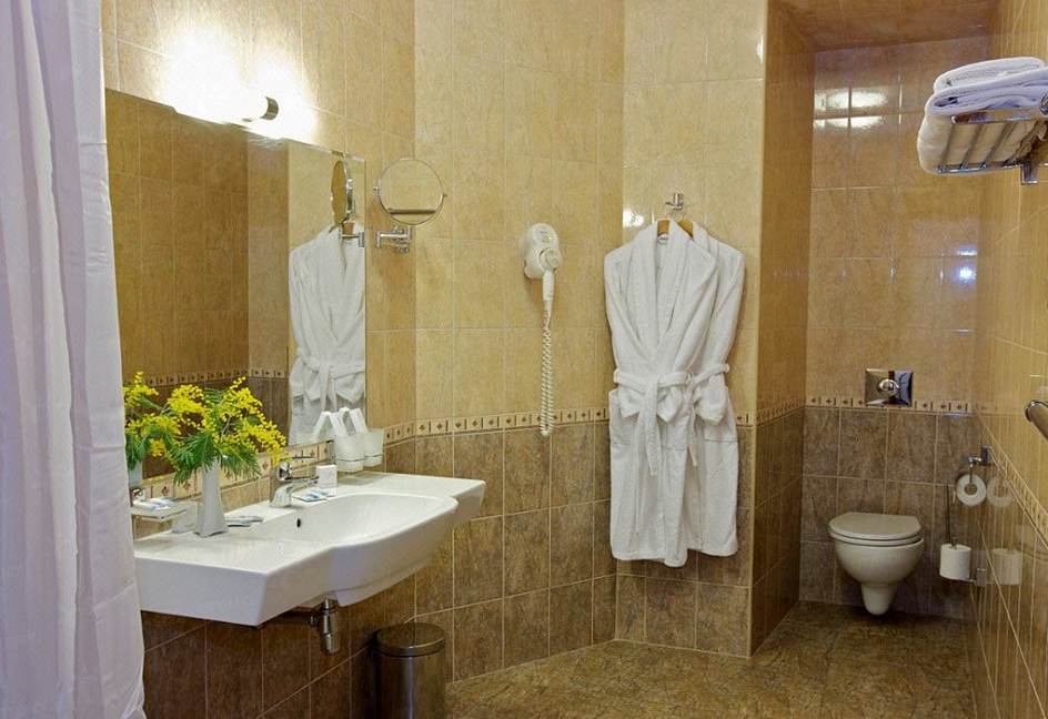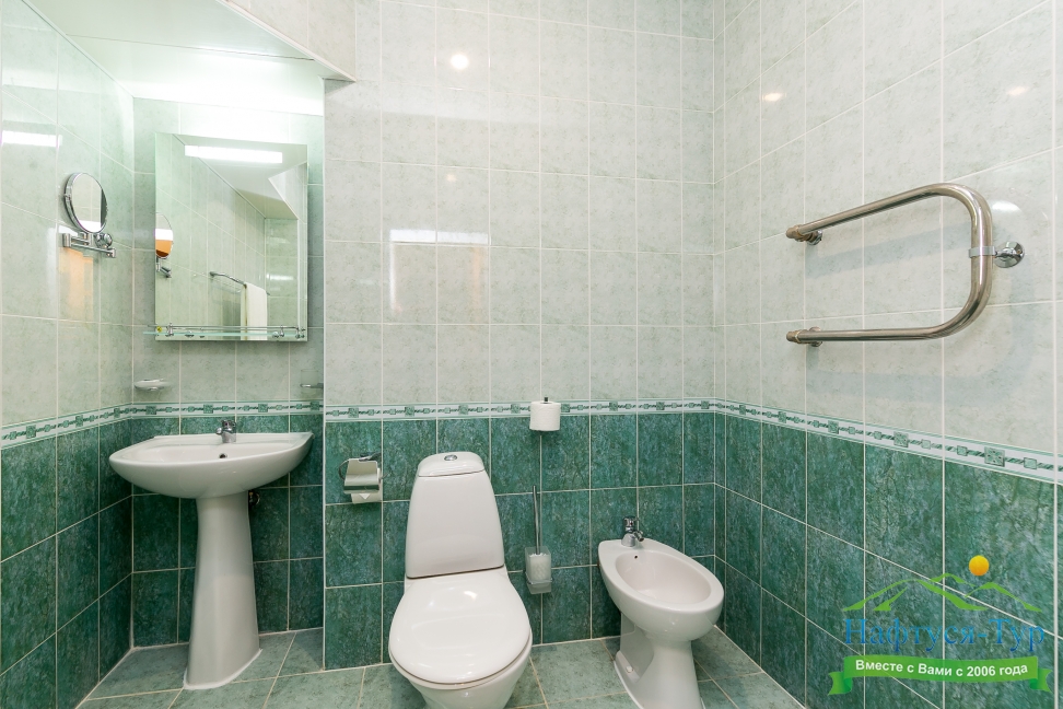 биде, с ванной, тапочки, туалетные принадлежности, фен, халат