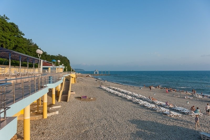 Пляж, расстояние 200 м, собственный благоустроенный мелкогалечный.Спуск к пляжу осуществляется на панорамном лифте, по пешеходной дорожке и по подземному переходу.