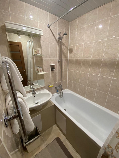 душевая кабина,ванна,набор полотенец