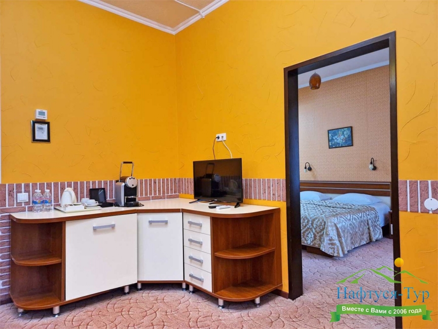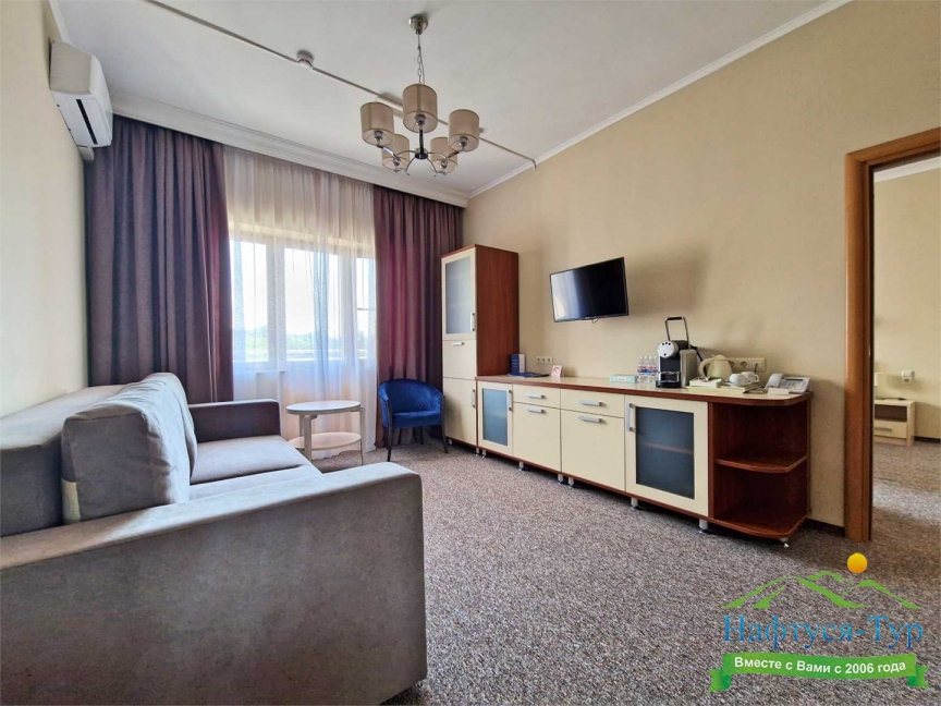 - собственный, 200 м от санатория