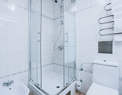 с душевой кабиной, туалетные принадлежности, фен