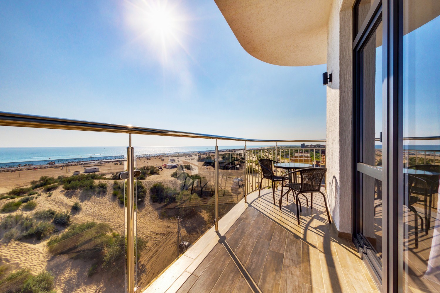 Поездом до ж/д вокзала г. Анапа, далее 69 м до остановки «Вокзал Анапа», далее на маршрутном такси №120 до остановки «ЛОК Витязь», далее 900 м до отеля.