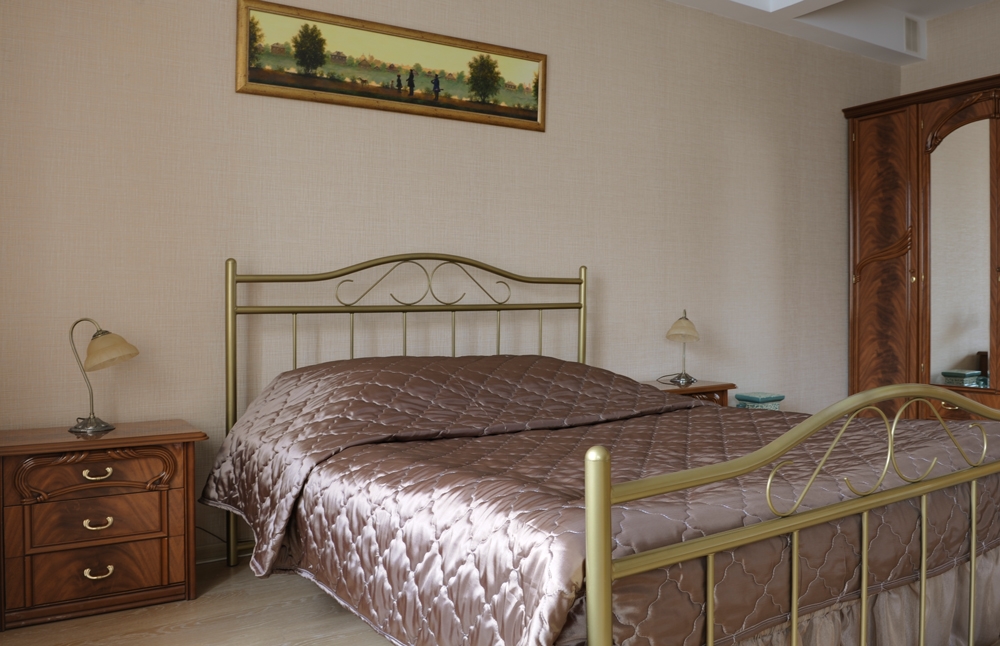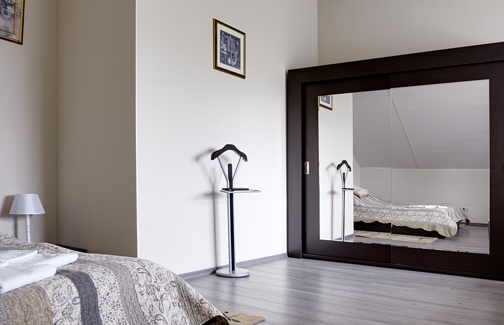 вешалка, диван, зеркало, комод, кровати односпальные /одна двуспальная кровать, прикроватные тумбочки, стол, стулья, шкаф