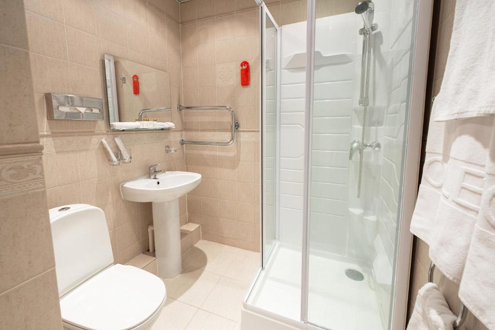 душевая кабина,набор полотенец,умывальник