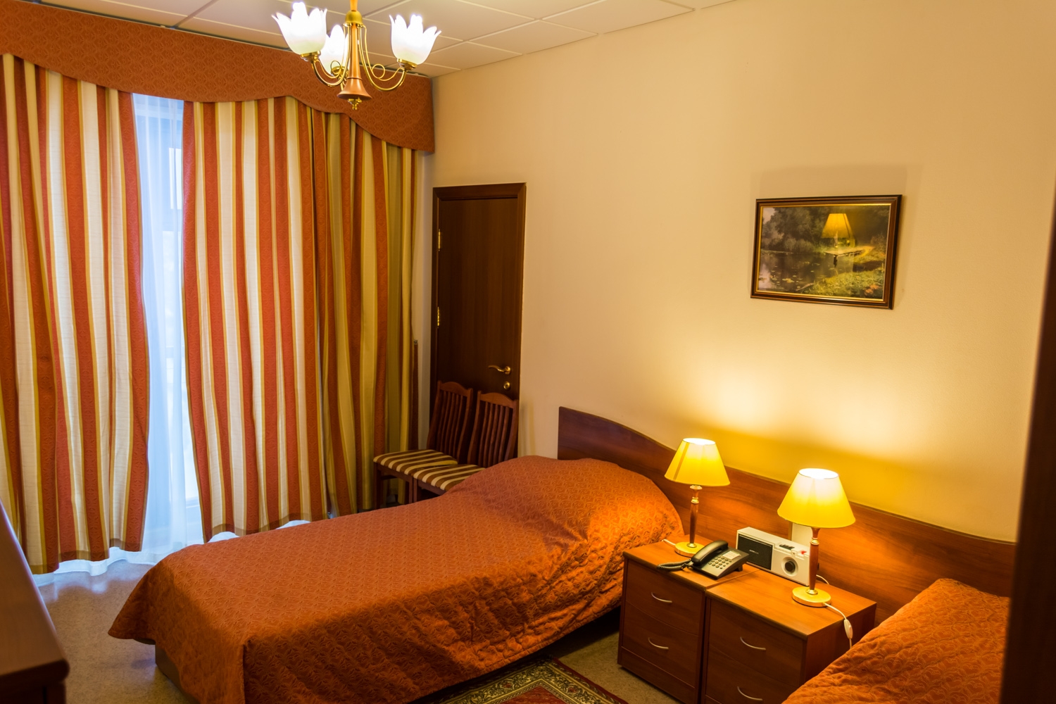 кровати односпальные /одна двуспальная кровать, прикроватные тумбочки, стол, стулья, тумба, шкаф