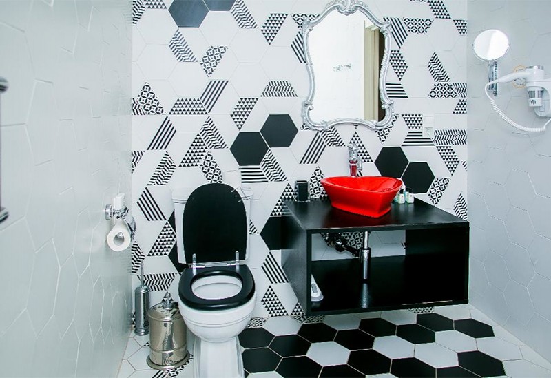 с ванной, туалетные принадлежности, фен