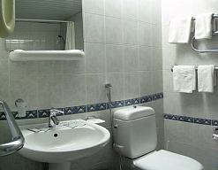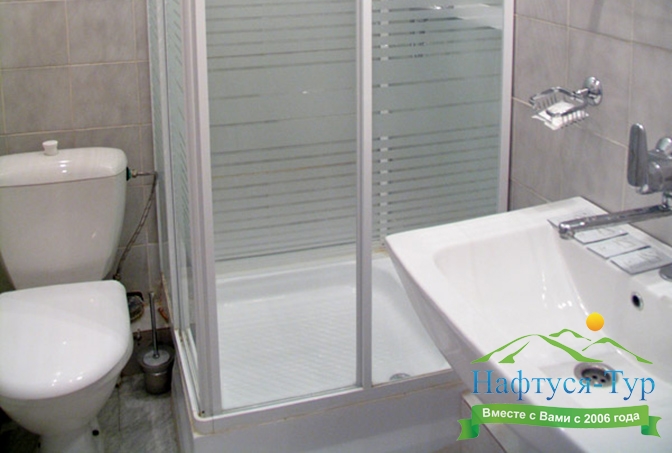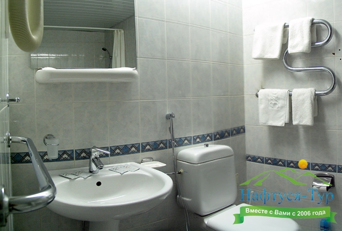 с душем или ванной, туалетные принадлежности, фен