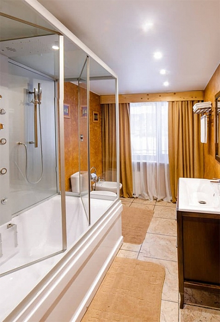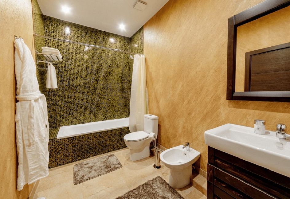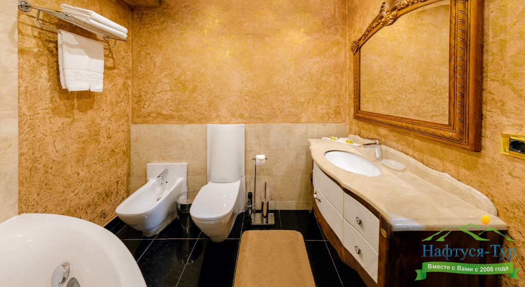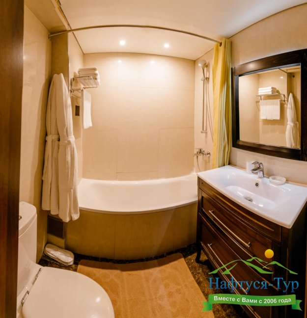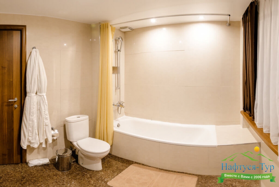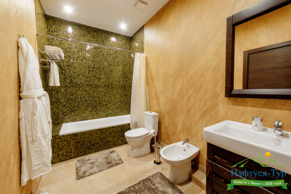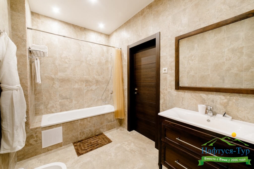 2 санузла, биде, с ванной, тапочки, туалетные принадлежности, фен, халат