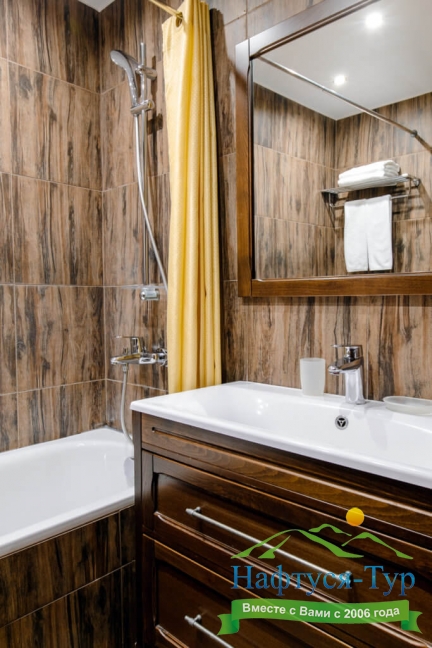 с ванной или душевой кабиной, туалетные принадлежности