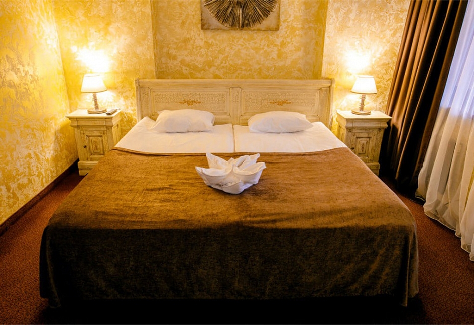 2) Чистые и уютные номера, немного темные и небольшие правда. И слышымость очень хорошая. Разговор в номер через коридор был слышен. Так что лучше приезжать в будни, когда народу немного.