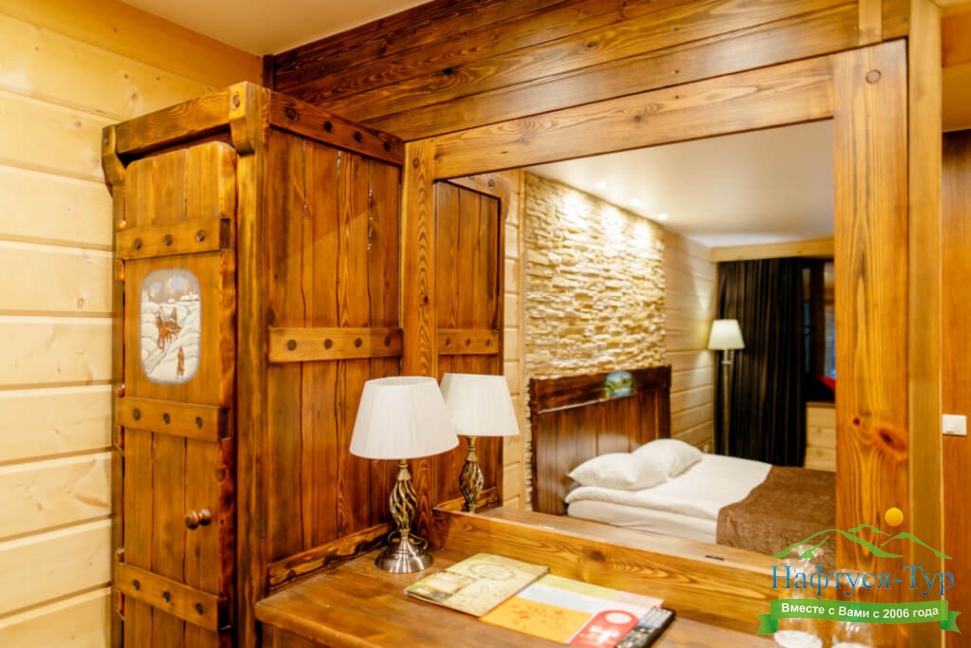 зеркало, кровати односпальные /одна двуспальная кровать, прикроватные тумбочки, стол, стулья, шкаф