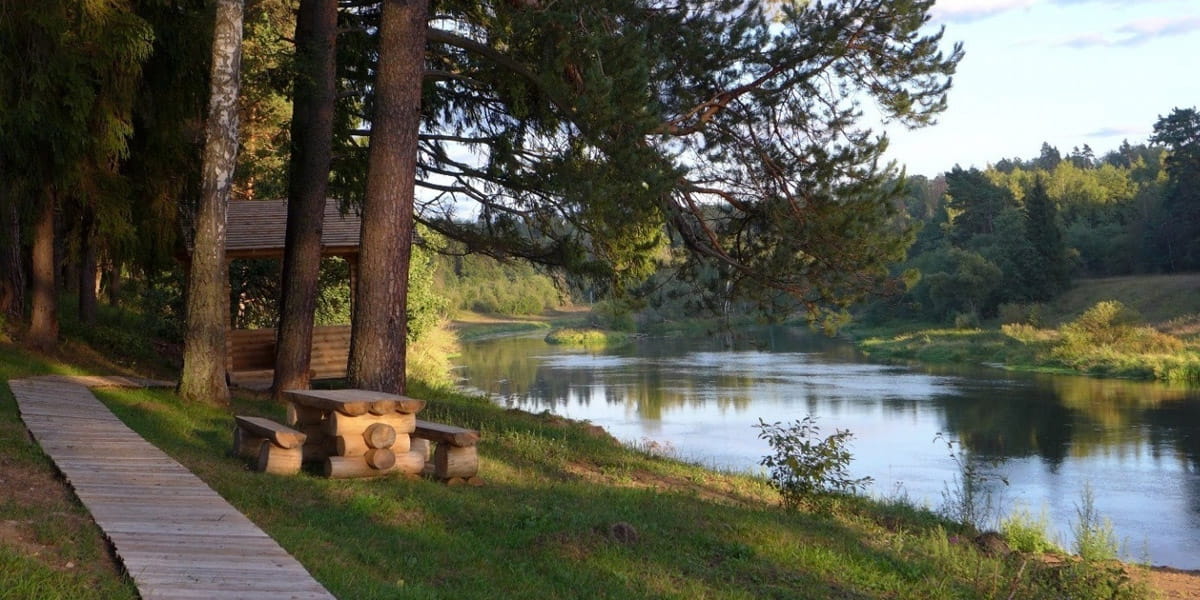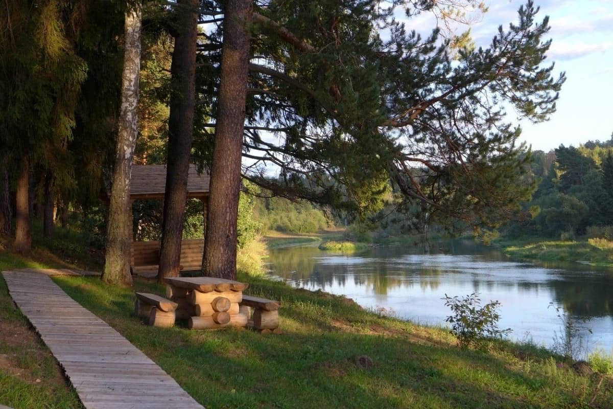 На берегу живописной реки расположены мангальные зоны.