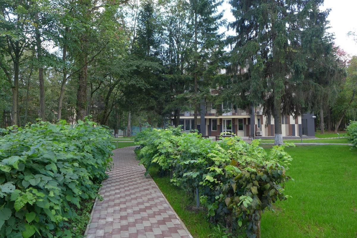Самолетом до аэропорта Внуково г. Москвы, далее на аэроэкспрессе до Киевского вокзала, далее на метро от ст. Киевская до ст. Славянский бульвар, далее электричкой до ст. Тучково, далее пересесть на автобус №21 (26/21, 455, 62/21) до остановки Санаторная, далее пройти до 1,3 км до отеля.