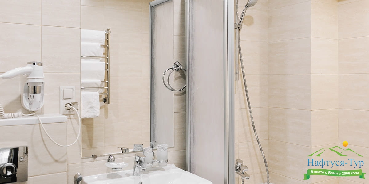 с душем, туалетные принадлежности, фен
