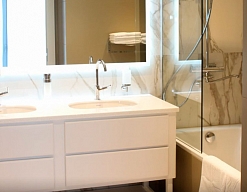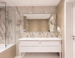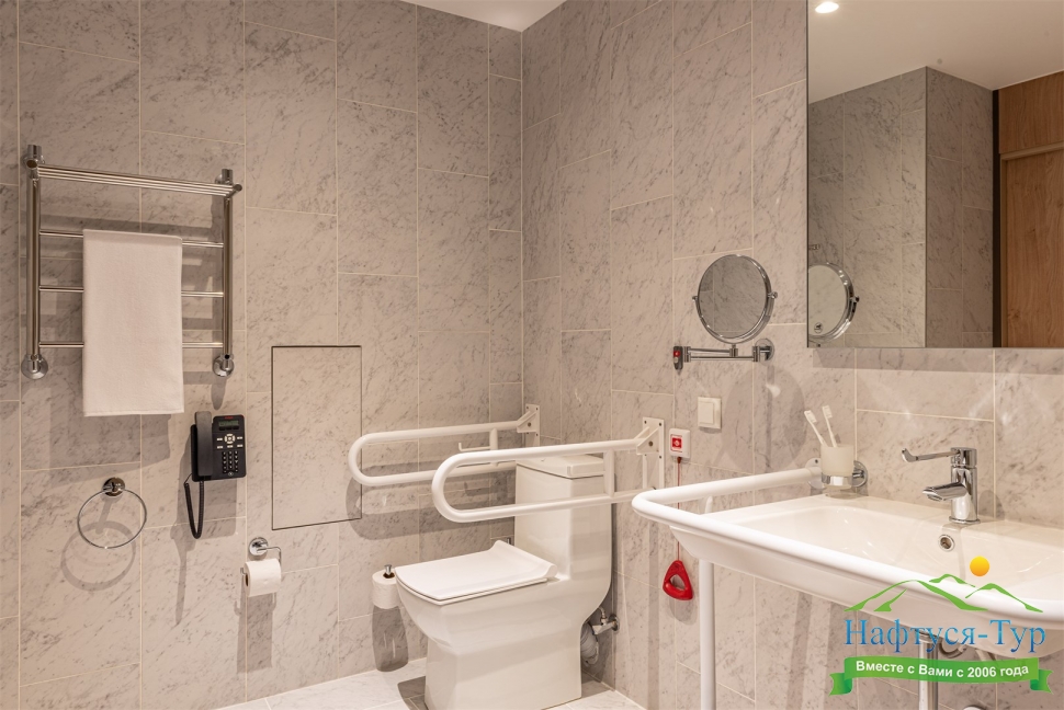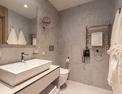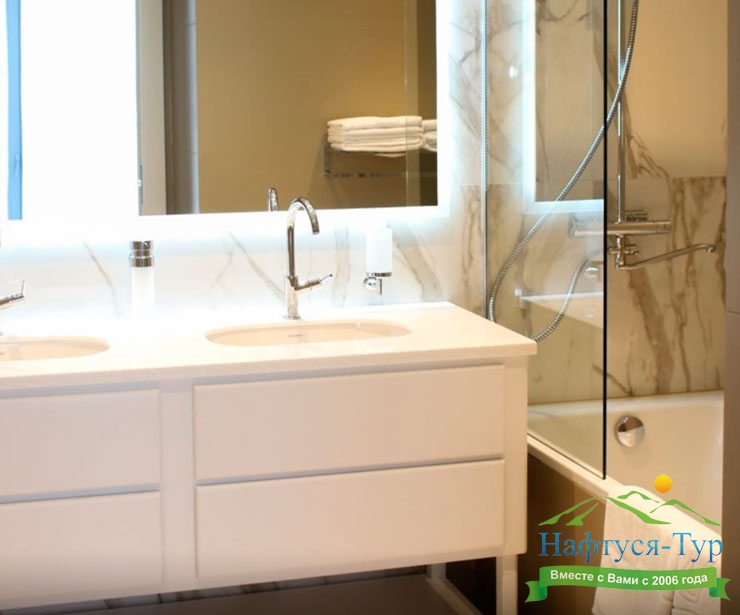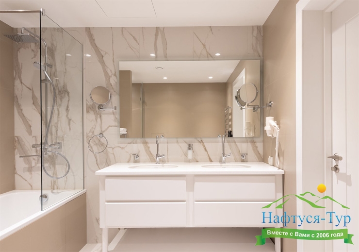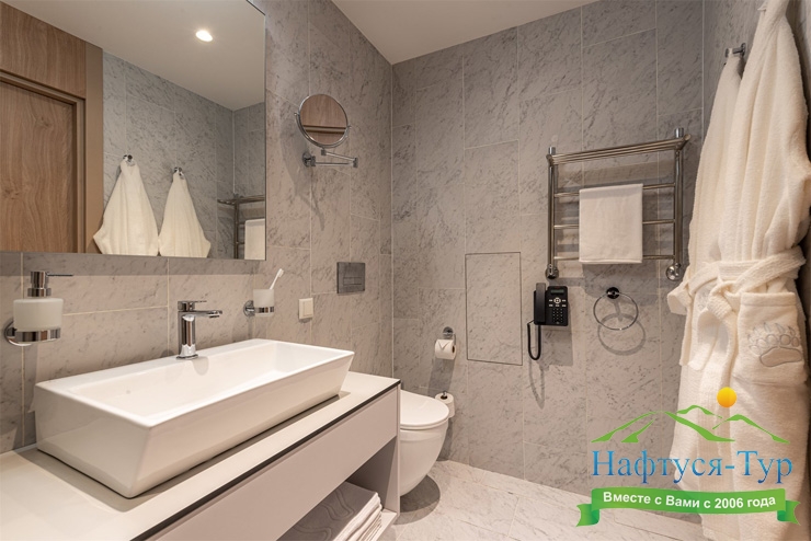 с ванной, туалетные принадлежности, фен, халат