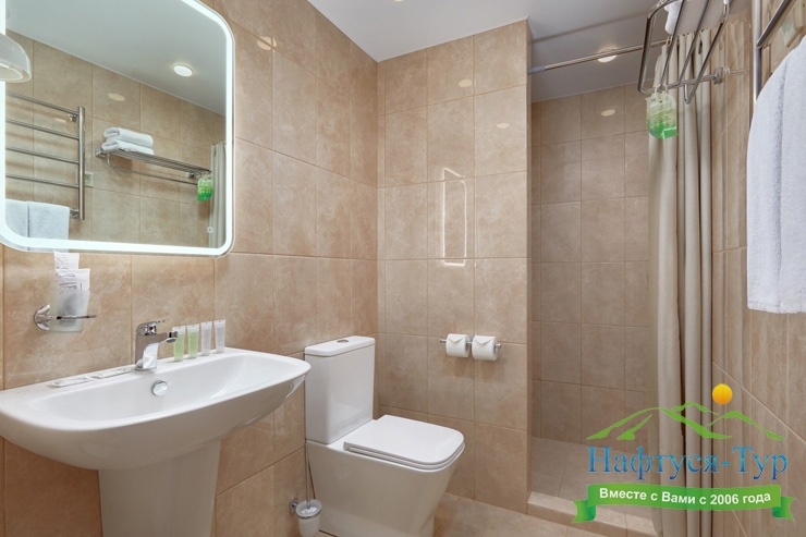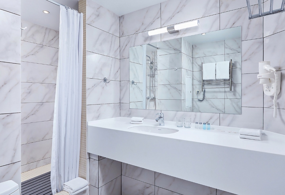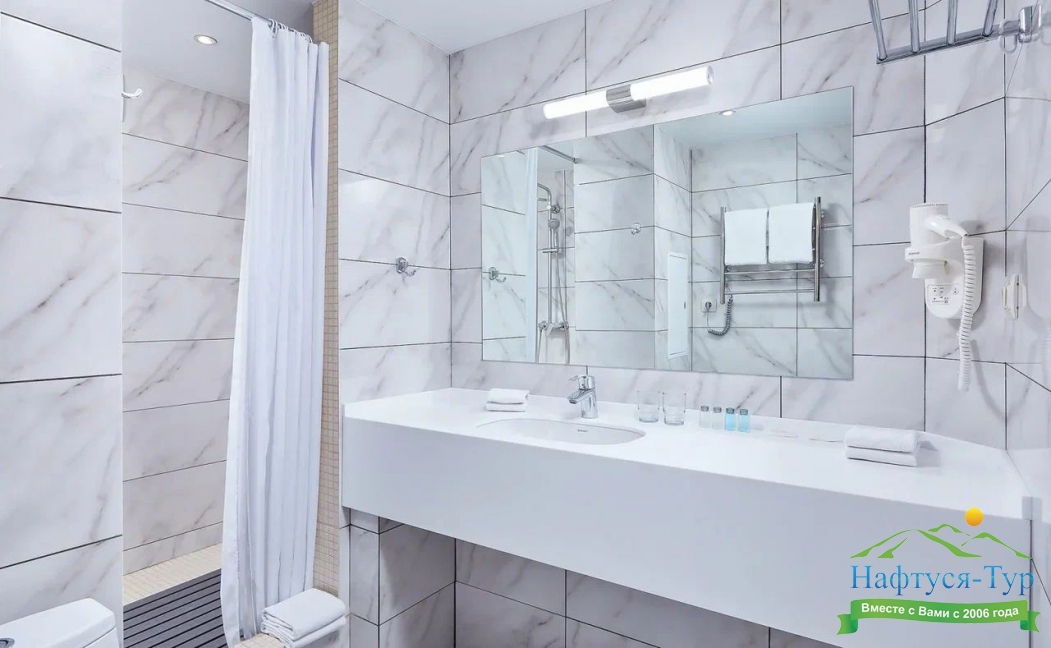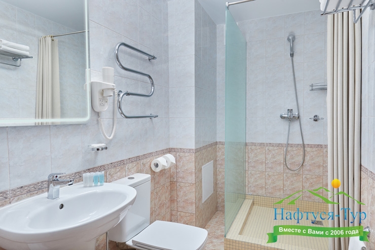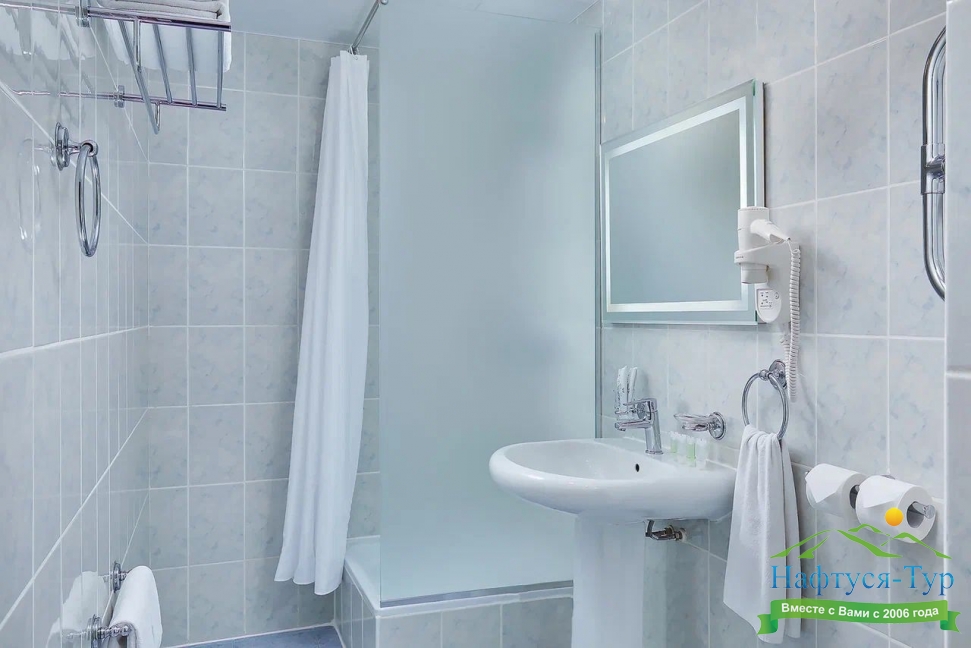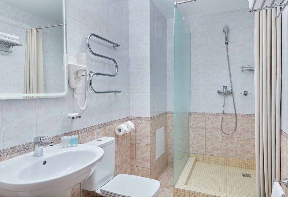 с душем, туалетные принадлежности, фен