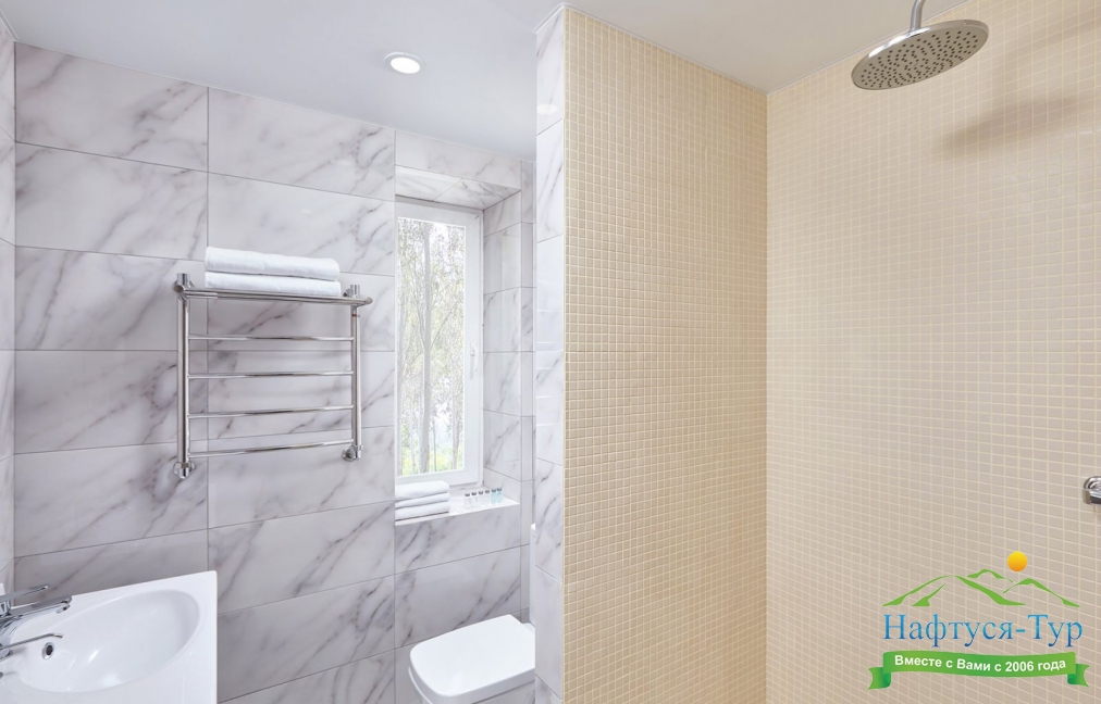 2 санузла, с душем, тапочки, туалетные принадлежности, фен, халат