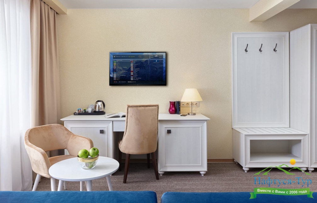 мини-холодильник, телевизор ЖК, телефон, чайная станция, чайный набор посуды