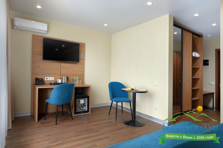 кондиционер, мини-холодильник, телевизор, телефон, чайная станция, чайный набор посуды