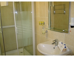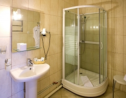 с душевой кабиной, туалетные принадлежности, фен