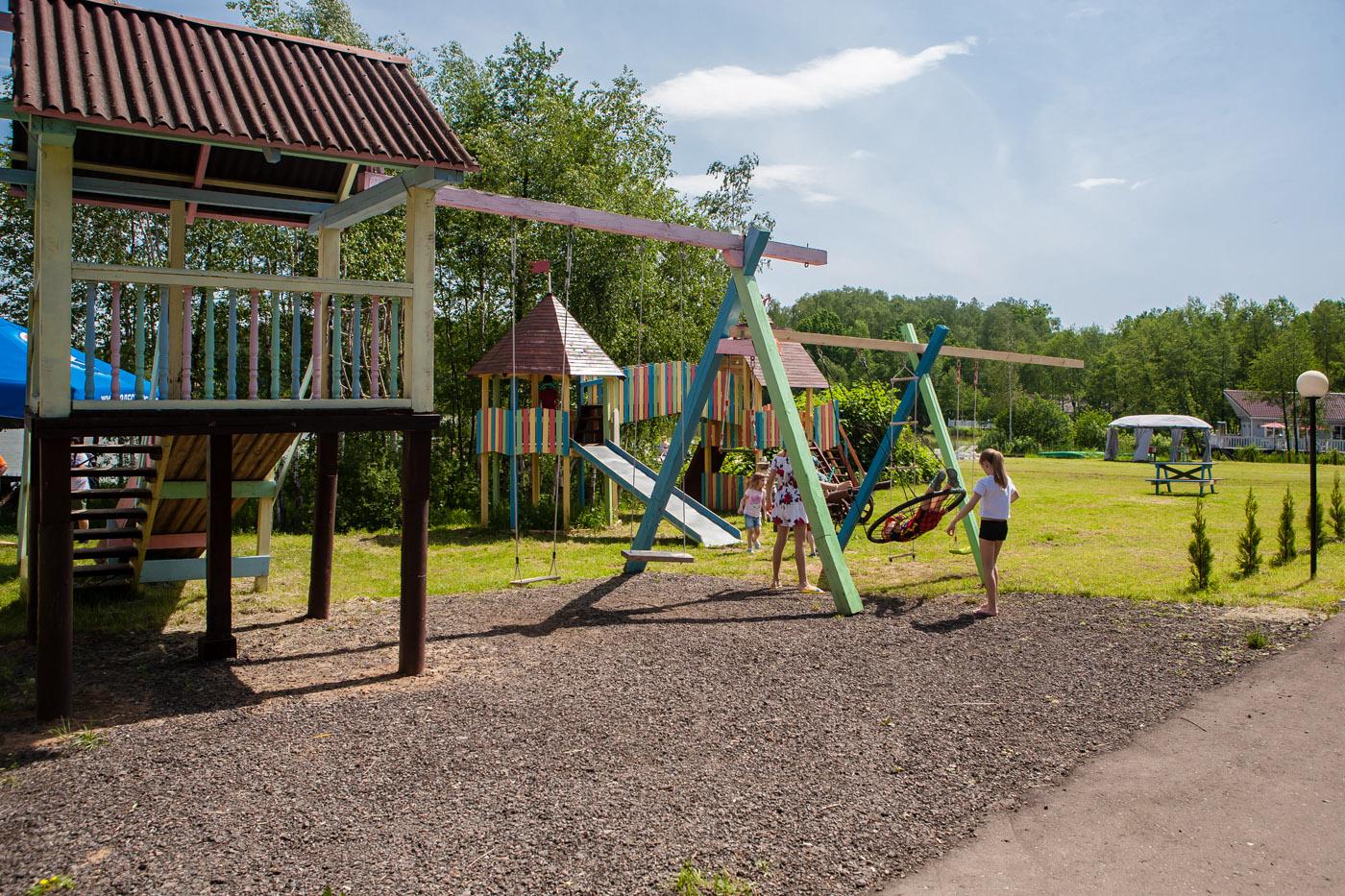 · Большая территория, есть где погулять. У домиков есть стол с лавкой с мангалом. Арендовали Скандинавскую беседку, она в глубине, у леса, музыка никому не мешала.