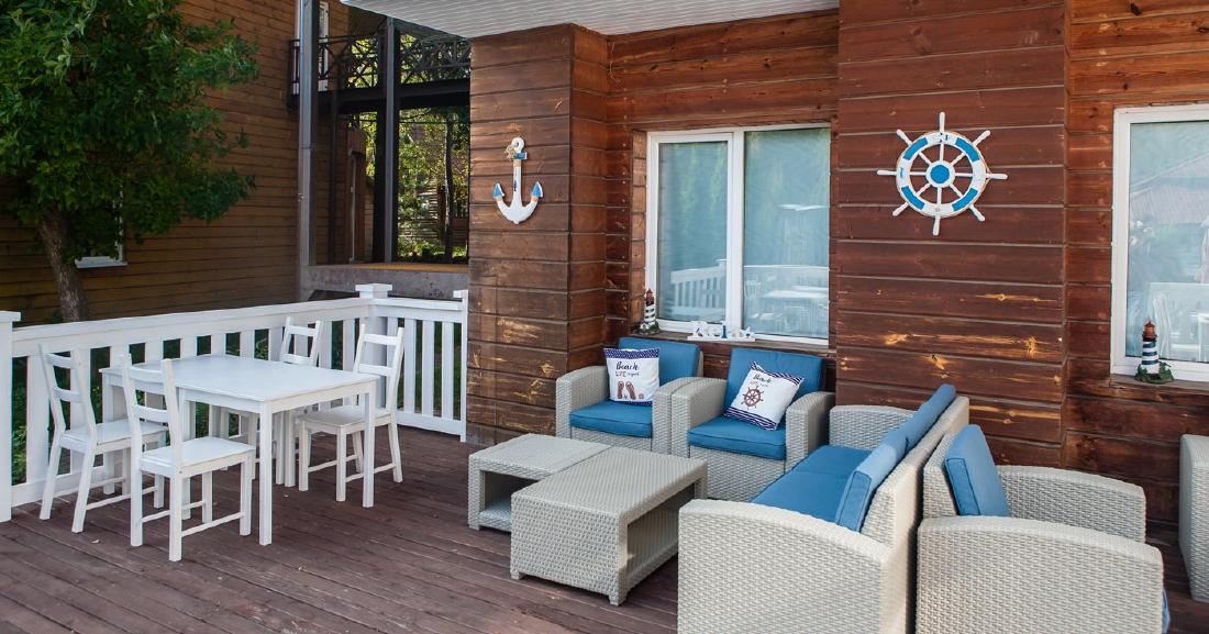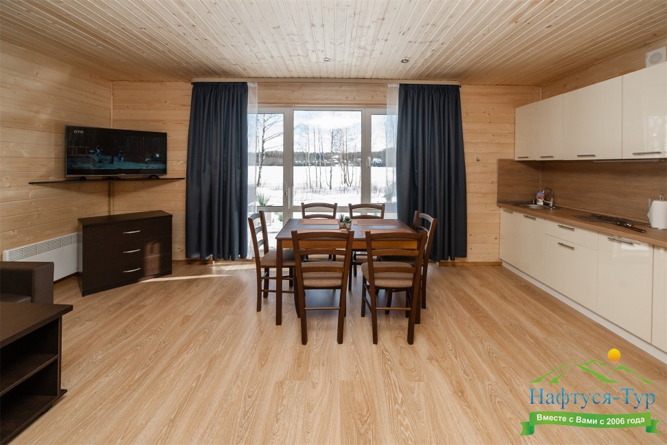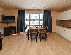 В домиках большой холл, удобно посидеть большой компанией даже в непогоду.