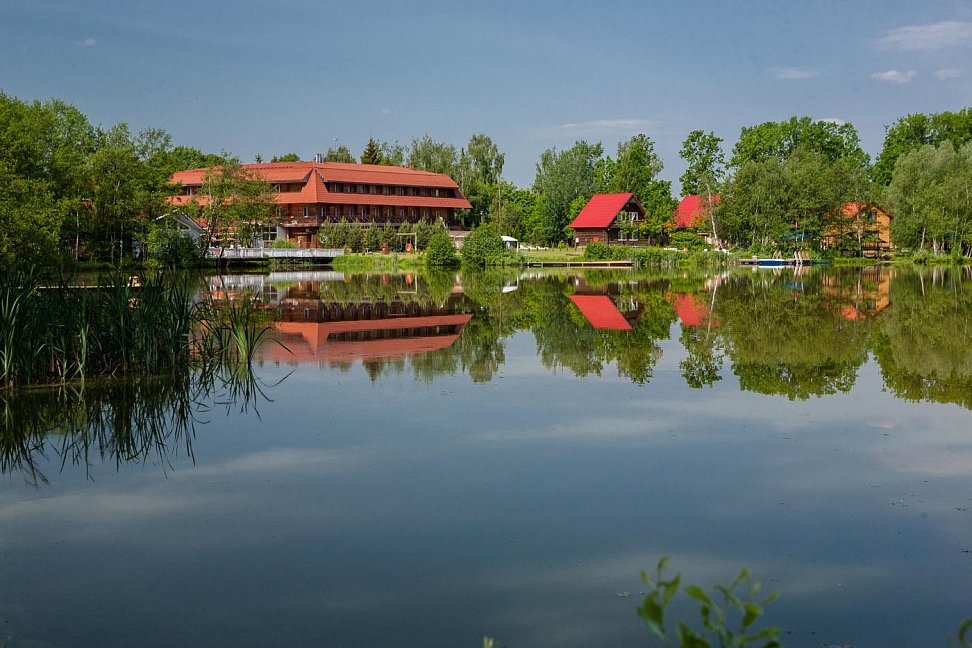 - расположен на берегу трех живописных озер