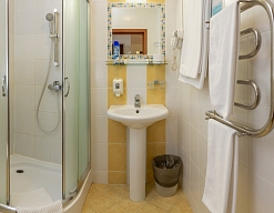 сауна, с ванной или душевой кабиной, туалетные принадлежности, фен
