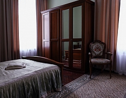 кровать односпальная, прикроватные тумбочки, стулья, шкаф