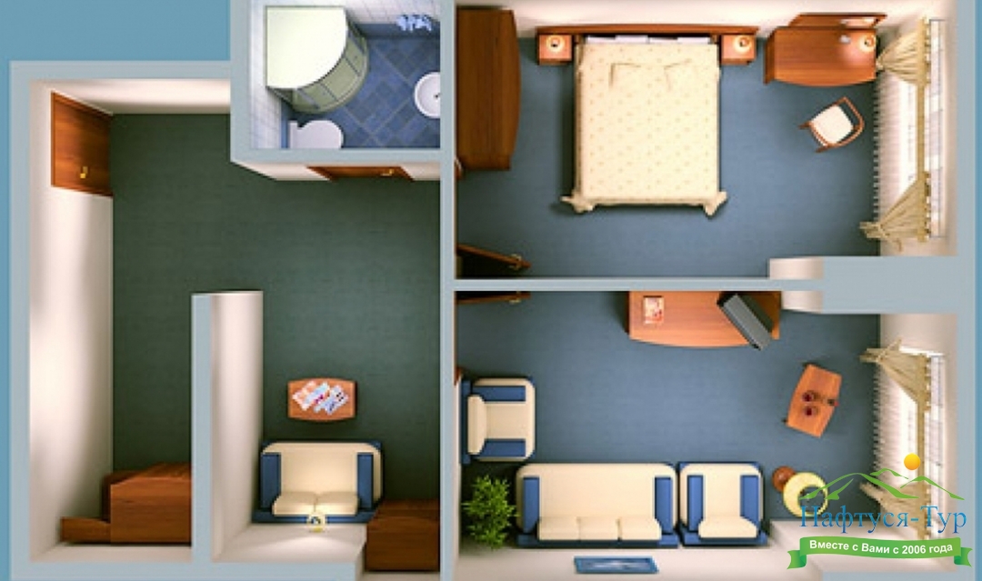 Длительное проживание от 7 ночей.В стоимость входит:3-х разовое питание,посещение бассейна.