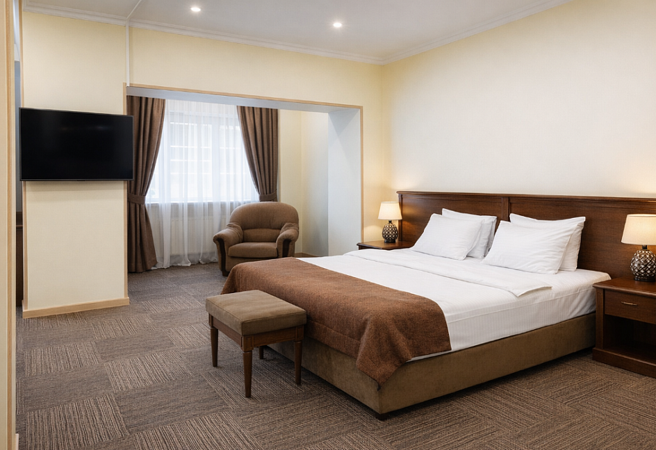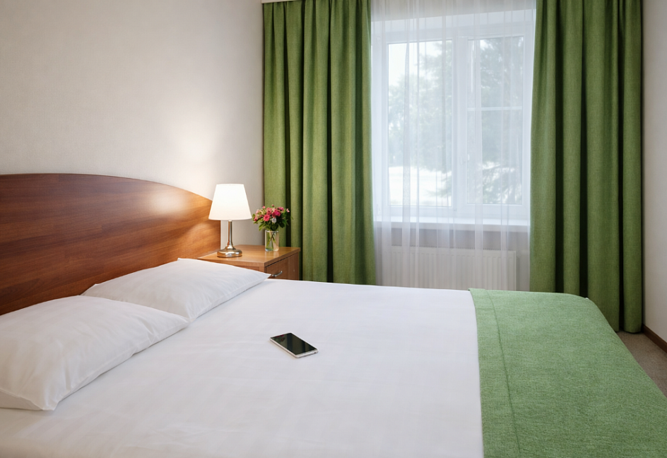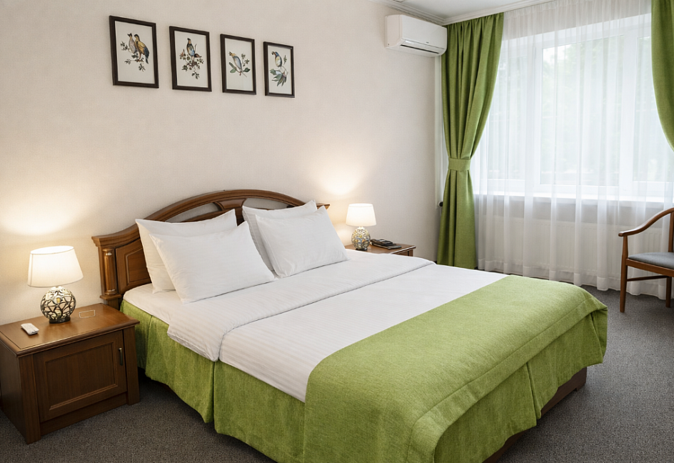 смена полотенец (1 раз в 3 дня) , смена постельного белья (1 раз в 3 дня) , уборка номера (ежедневно) , услуги телефонной связи по территории отеля