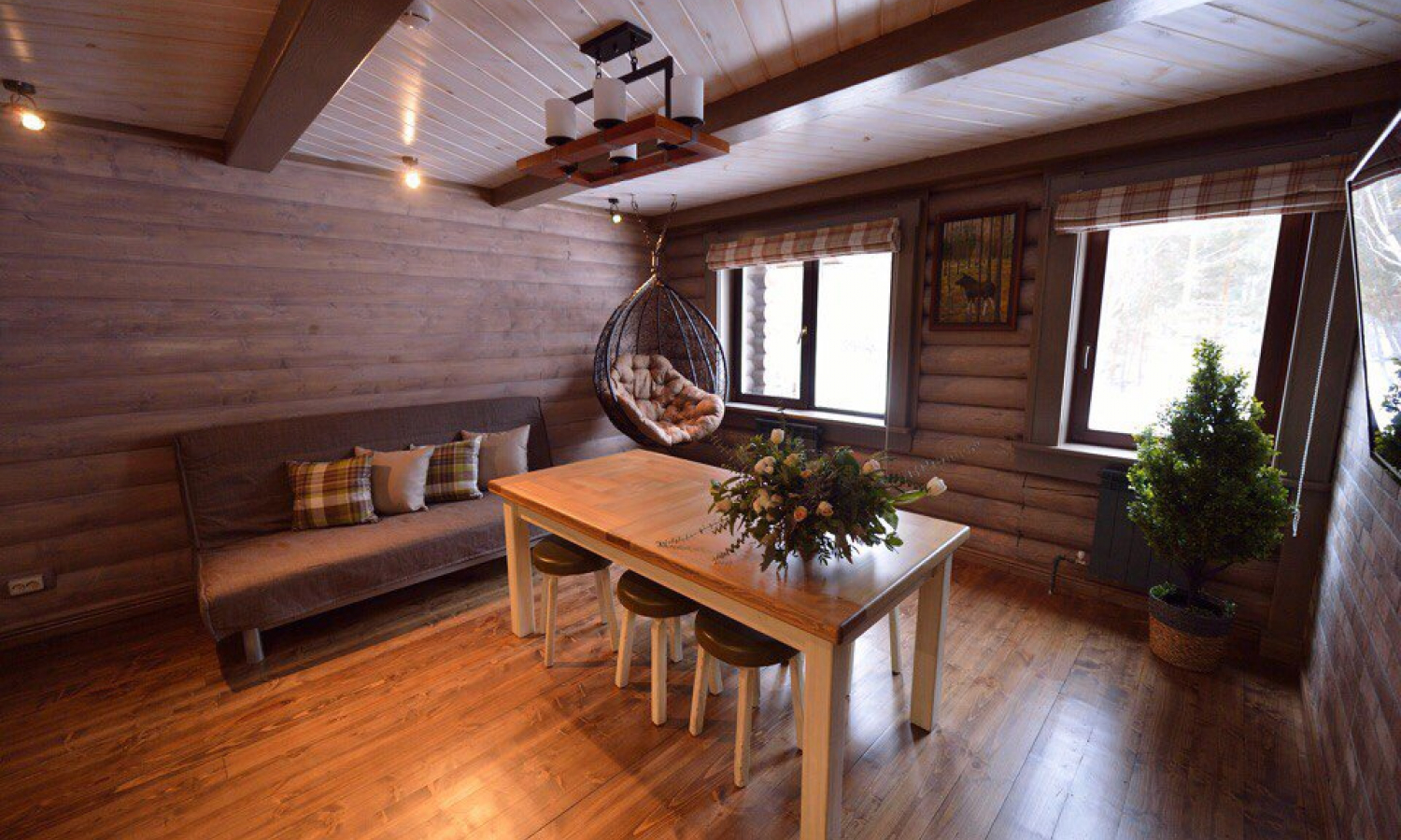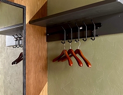 вешалка, диван раскладной, зеркало, кровать двуспальная/ две полутороспальные кровати, кухонная мебель, прикроватные тумбочки, стол, стулья